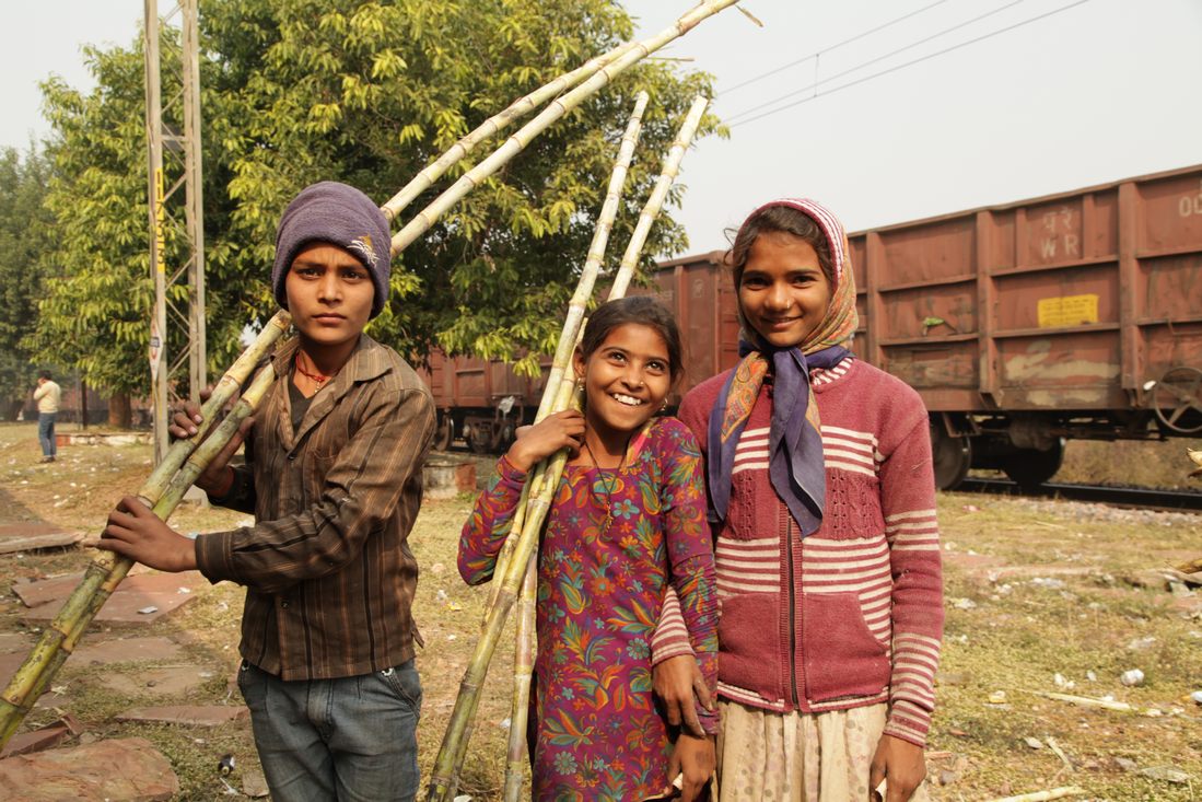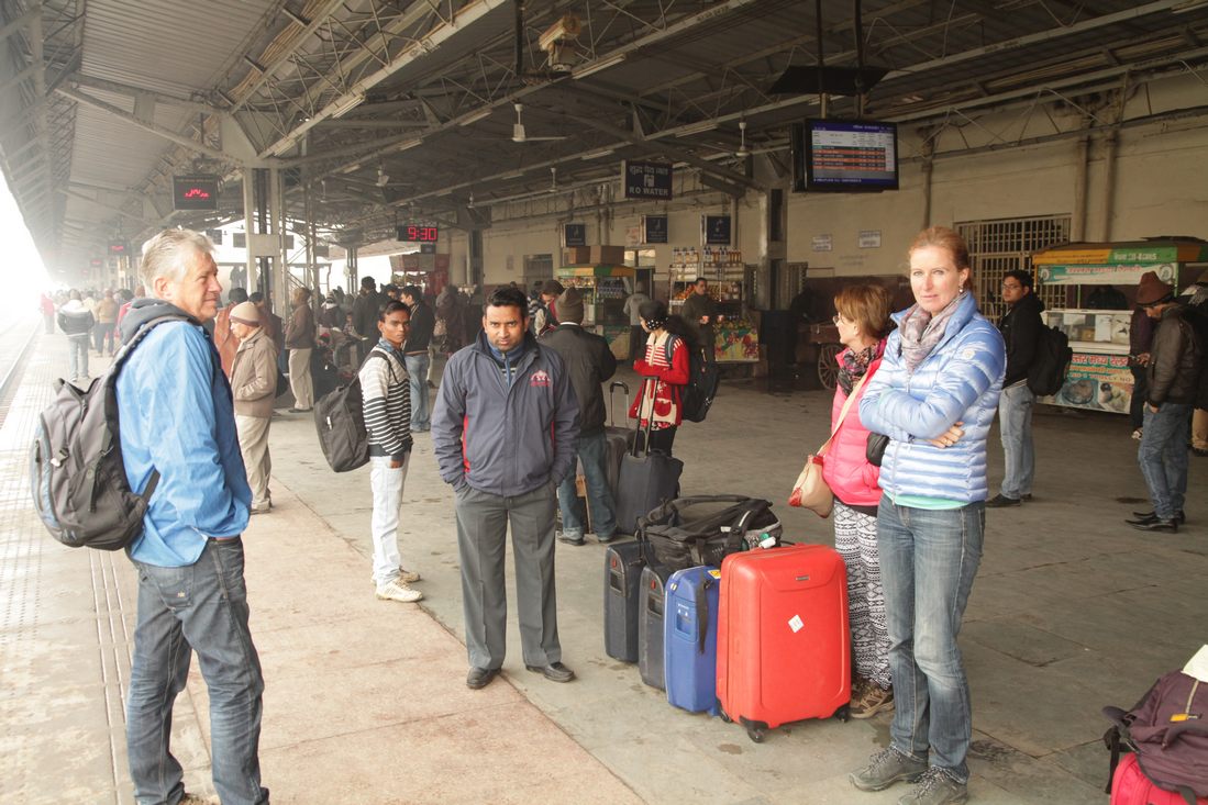 Ons laatste ritje met Mr. Singh en de plaatselijke vertegenwoordiger van Nirvana bracht ons naar het treinstation van Agra. Iedereen had zichtbaar moeite met het afscheid. Anderhalf uur later dan gepland vertrok de trein dan toch richting Jhansi. Steeds als we dachten, dit gaat lekker vlot stopte de trein ergens in het land. Soms zo lang dat er passagiers buiten begonnen te lopen. Stopte de trein toevallig in de buurt van een dorpje, dan stonden er binnen de korste keren verkopers bij de trein. Net voorbij het station van Kotra bleef de trein ook alweer een minuut of 20 stilstaan. De plaatselijk jeugd kwam, naar later bleek, suikerrietplanten aanbieden. De Indiƫrs gebruiken dit als een soort zoethout. Het fototoestel leek uiteindelijk belangrijker dan de verkoopactiviteiten......