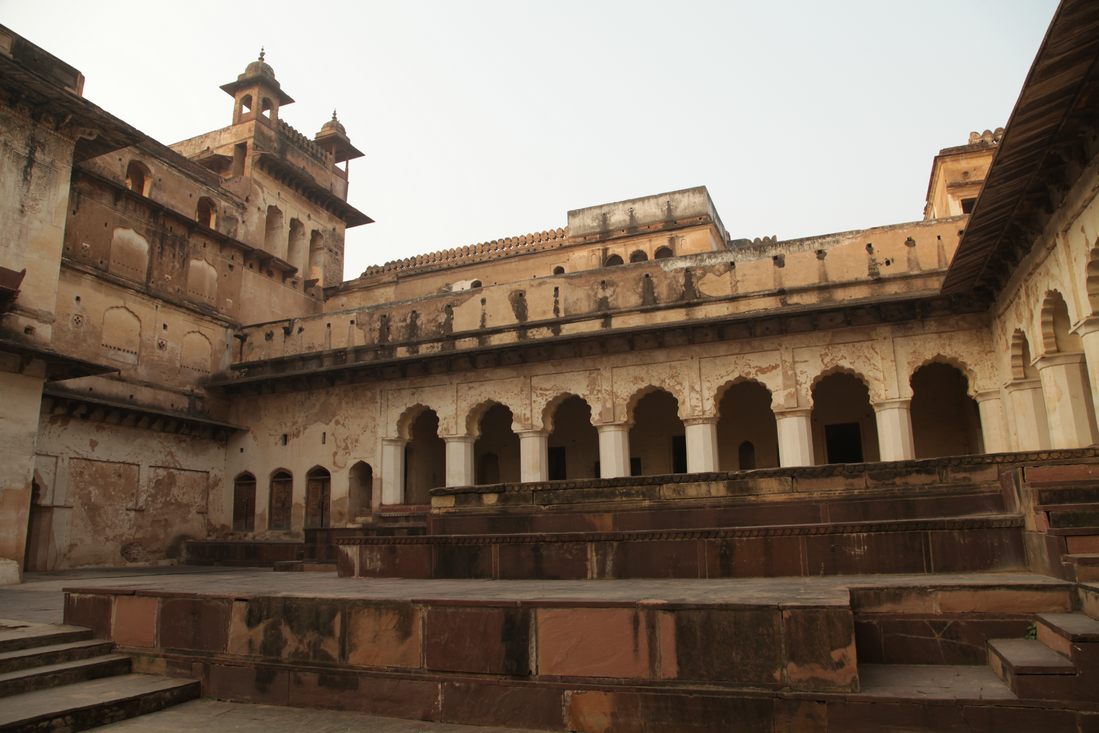 Vier uur te laat bereikten we Jhansi. Onze nieuwe chauffeur Pramoth had al die tijd staan te wachten. We moesten snel op pad, want tijdens onze lange rit naar Khajuraho zouden we nog een snelle lunch moeten doen en het mooie plaatsje Orchha bekijken. Onze razendsnelle lunch bestond uit een paar sandwiches en Pramoth begreep niet hoe we zó snel weer buiten konden staan. Op naar het iets verder gelegen Orchha. We legden de plaatselijk gids uit dat we graag de korte versie van de rondleiding wilden omdat de reis nog wel wat tijd in beslag zou nemen. Nou, dat kon. Gelukkig hebben we toch nog heel veel kunnen zien van de mooie bouwwerken.