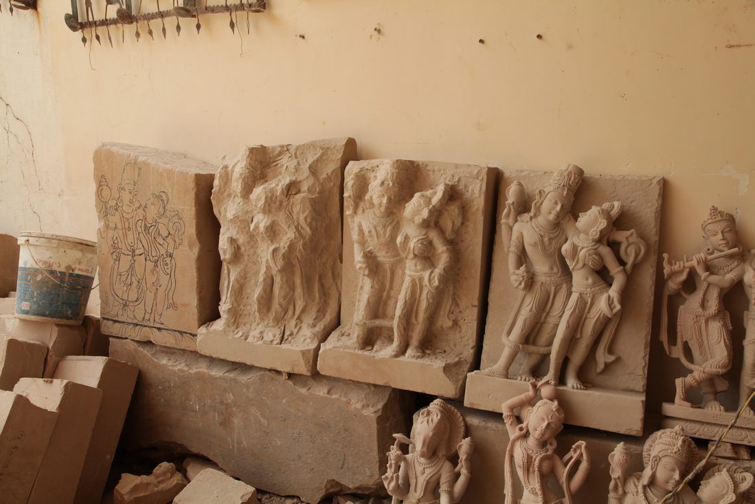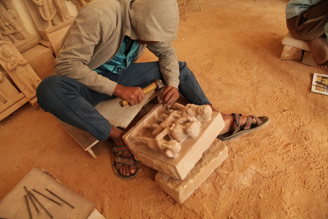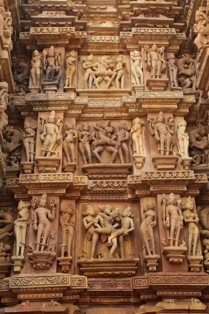 De volgende dag vertrokken we met gids naar het centrum van Khajuraho om de tempelcomplexen te bekijken. De gids vertelde met smaak over de erotische afbeeldingen! Na het bezichtigen van tempelcomplex 1 moesten we nog even naar de andere kant van het dorp voor tempelcomplex 2. Ook deze gids lokte ons weer naar een winkel met huisgemaakte rommel. Wel hebben we nog even gekeken naar het uithakken van de beelden, maar de thee Ʃn de vele aanbiedingen hebben we beleefd afgeslagen. Het zonnetje was inmiddels zo hard gaan schijnen dat we terug wilden naar het hotel. Eindelijk de korte broek en teenslippers aan en bij het zwembad liggen. Heerlijk!
