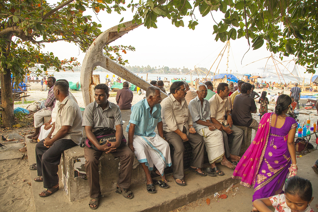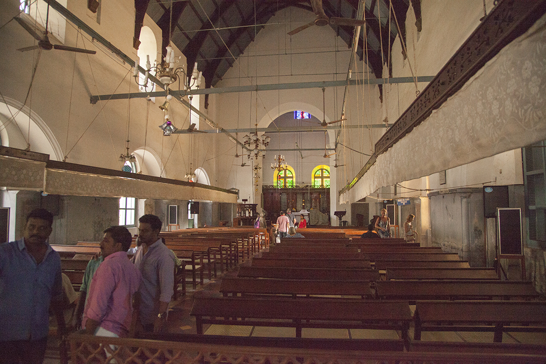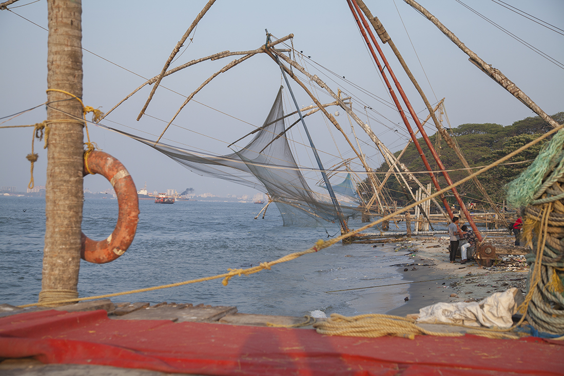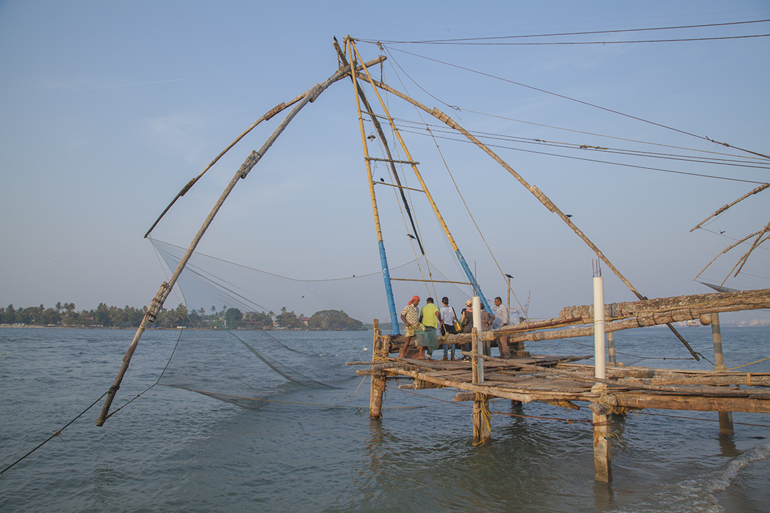 Na een prachtige rit door de bergen en de theeplantages bereiken we Cochin. Na een blik in de veel te sjieke eetzaal maar eens op Tripadvisor gekeken en laat Tandoor Restaurant met hele goede beoordelingen nou op loopafstand zijn. Terug naar het hotel en op zoek naar Baskar. Dan met de auto naar het oude deel van Cochin. Eerst een bezoek aan de St. Francis kerk, volgens zeggen de eerste kerk die door Europeanen in India werd gebouwd. Vervolgens een bezoek aan de Joodse Synagoge (foto's maken niet toegestaan) en als laatste een bezoek aan Fort Cochin en de Chinese visnetten aan het gezellig drukke strand.