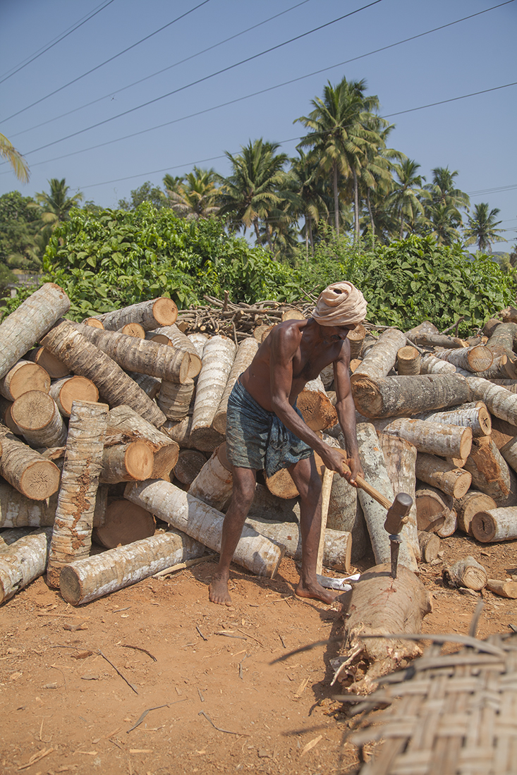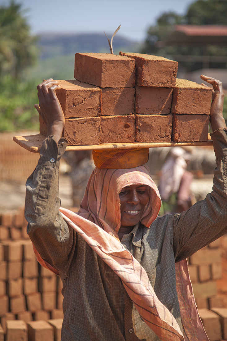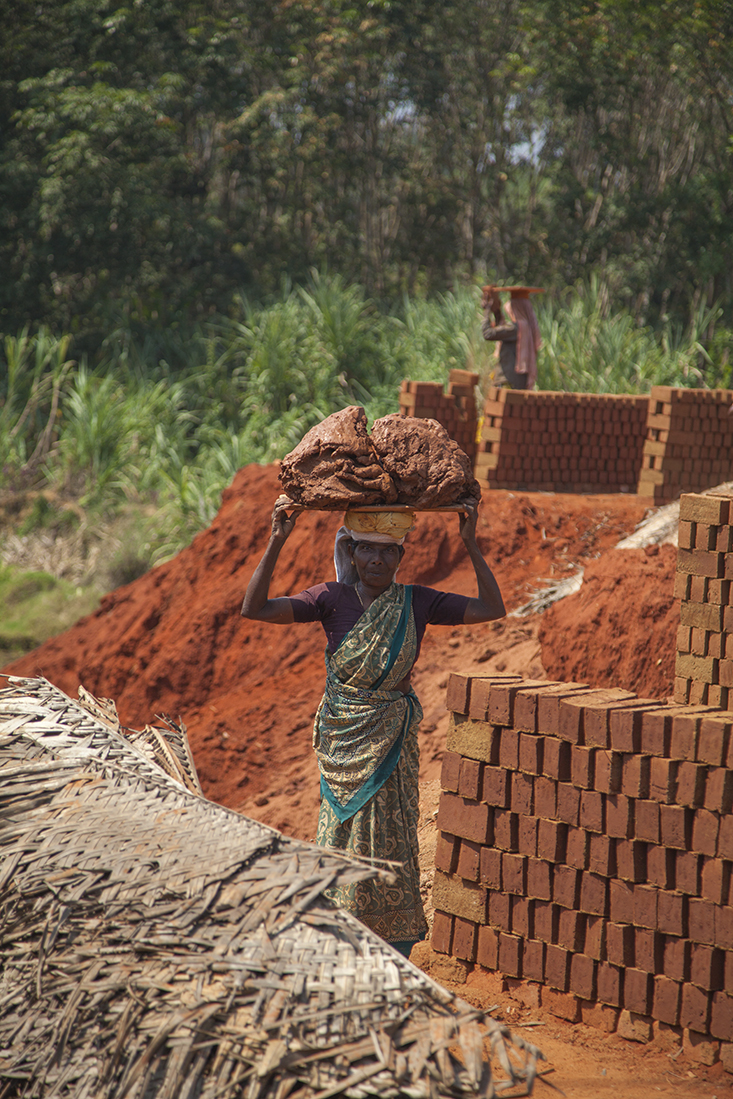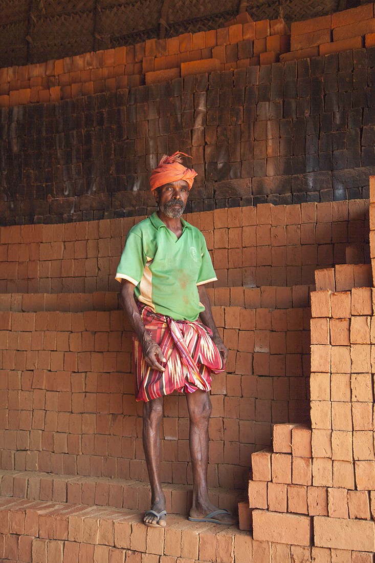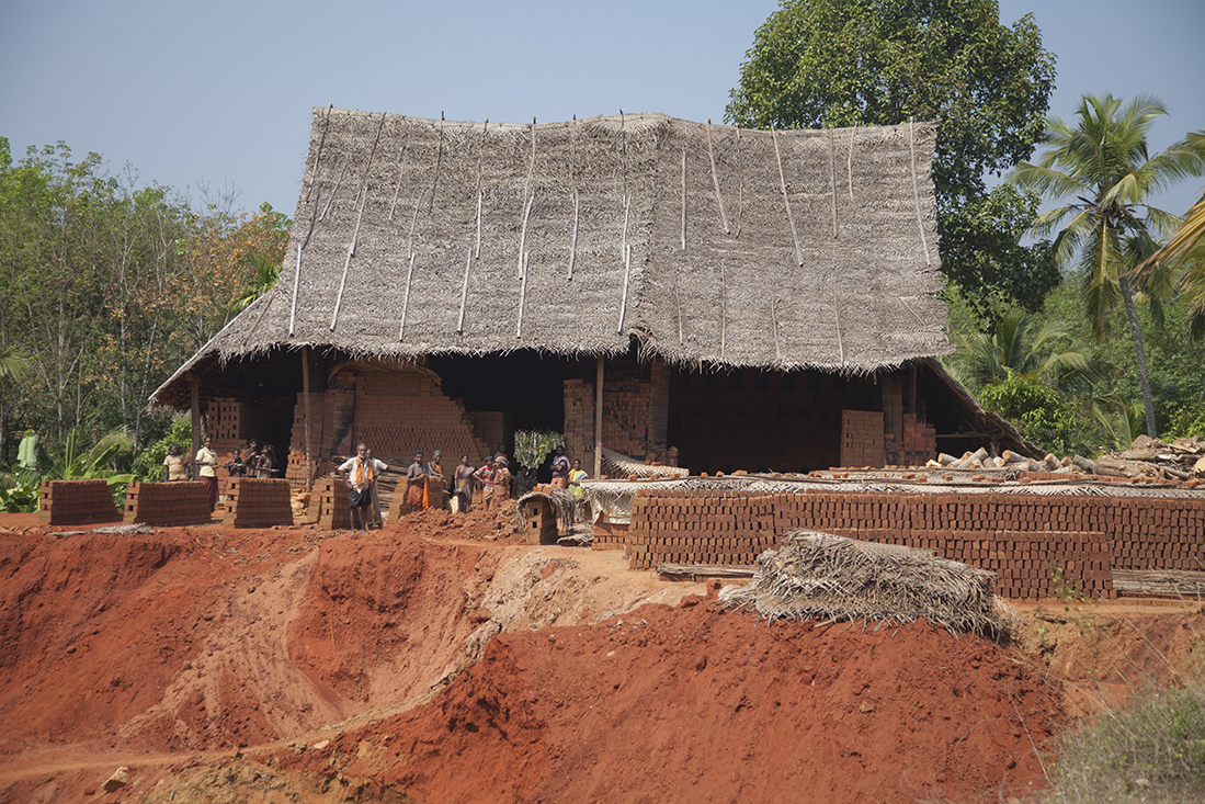 De volgende dag stond de allerlaatste grote autorit op het programma. We zouden naar Cape Camorin rijden, het zuiderlijkste puntje van het Indiase vasteland. Onderweg naar het zuiden moesten we een omleiding volgen wegens wegwerkzaamheden, maar dat zorgde wel voor een bezoek aan een plaatselijke steenbakkerij. De medewerkers waren minstens zo enthousiast als wij. Wat een zwaar werk!