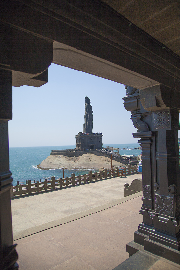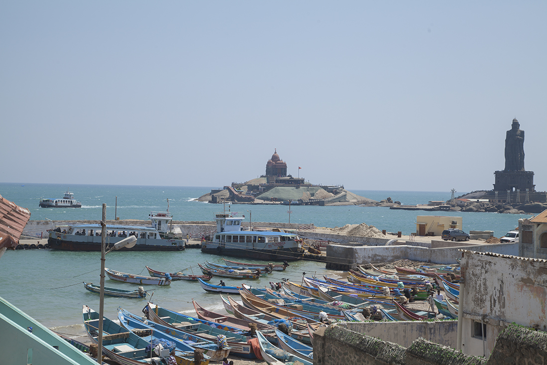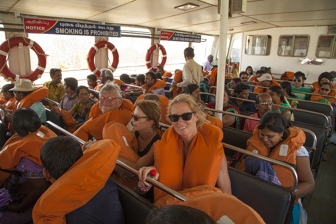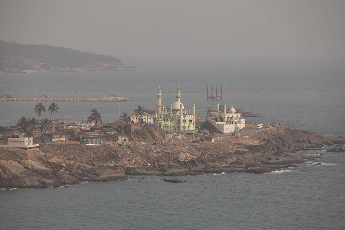 Aangekomen in Cape Camorin bleek dat we met een bootje twee eilandjes gingen bezoeken. EƩn met een tempel en de ander met een enorm groot standbeeld. Gewapend met zwemvest gingen we aan boord voor de tocht naar het eerste eiland. Na een snelle ronde terug in het bootje en naar het andere eiland. Daarna terug naar het vaste land en nog even wat gegeten in het dorp. Daarna op weg naar Kovalam. Hier aangekomen bij het hotel aan de overzijde nog even biertje/colaatje gedronken en afscheid genomen van Baskar. Hij was erg blij met de enveloppe mƩt inhoud.