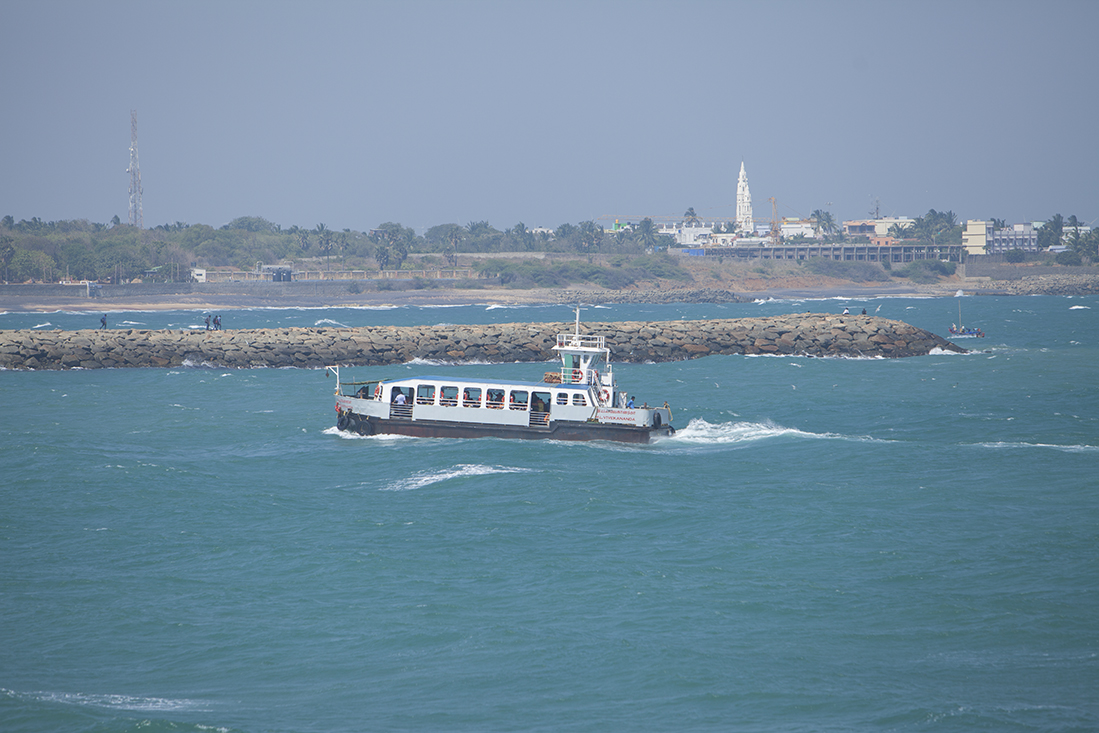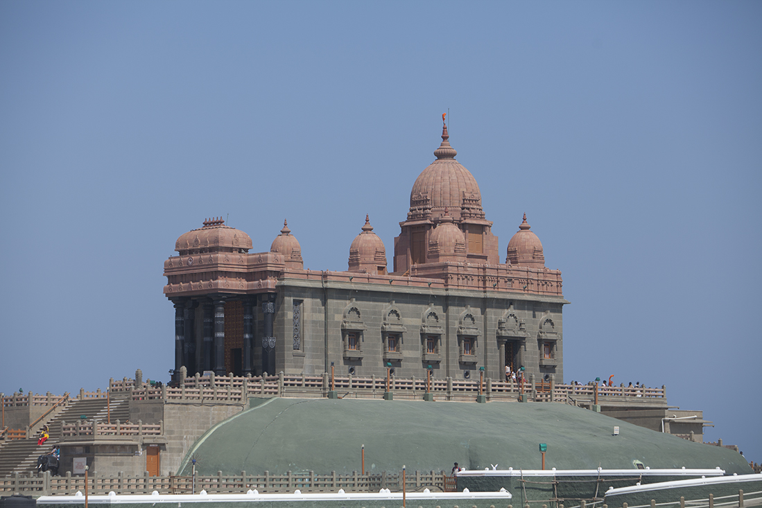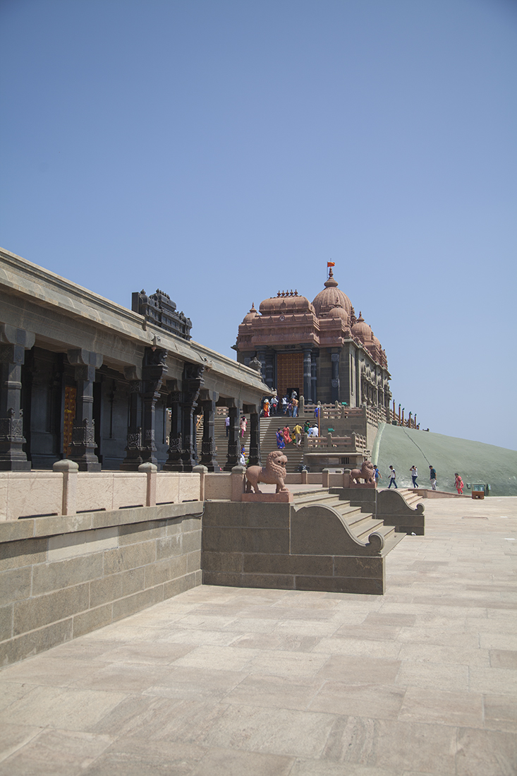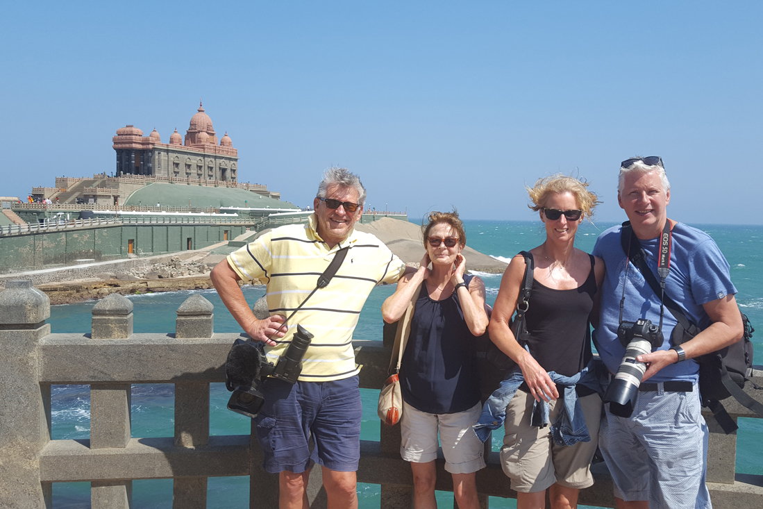 Aangekomen in Cape Camorin bleek dat we met een bootje twee eilandjes gingen bezoeken. EƩn met een tempel en de ander met een enorm groot standbeeld. Gewapend met zwemvest gingen we aan boord voor de tocht naar het eerste eiland. Na een snelle ronde terug in het bootje en naar het andere eiland. Daarna terug naar het vaste land en nog even wat gegeten in het dorp. Daarna op weg naar Kovalam. Hier aangekomen bij het hotel aan de overzijde nog even biertje/colaatje gedronken en afscheid genomen van Baskar. Hij was erg blij met de enveloppe mƩt inhoud.