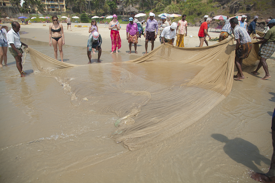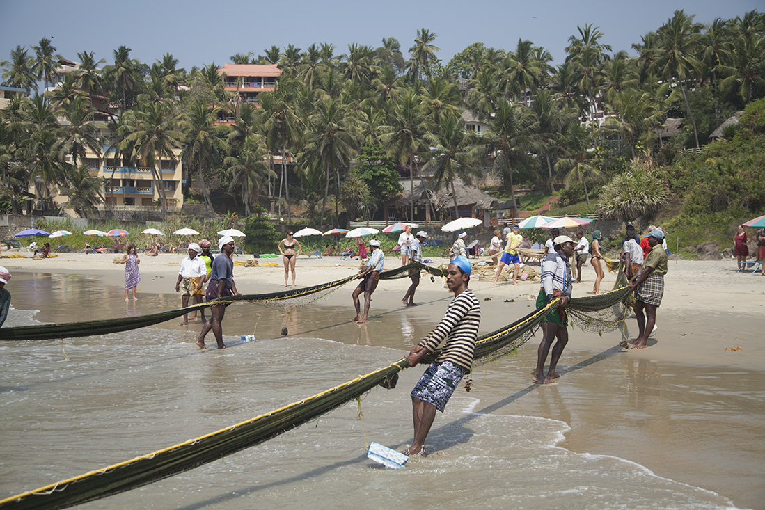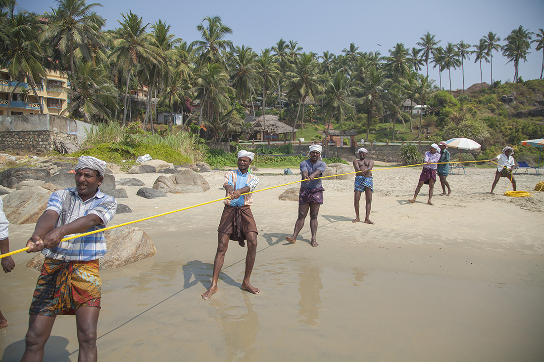 De laatste dagen hebben we niet Ʃcht veel meer gedaan, behalve het beklimmen van de vuurtoren natuurlijk. Verplicht nummer in Kovalam. Zaterdag hoorden we soort gezang vanaf het strand. Bleken vissers die een enorm sleepnet aan het binnenhalen waren. Uiteindelijk ruim uur bezig geweest en maar vier spartelende visjes in het net. Wist niet dat Indiase mensen zo boos konden zijn.