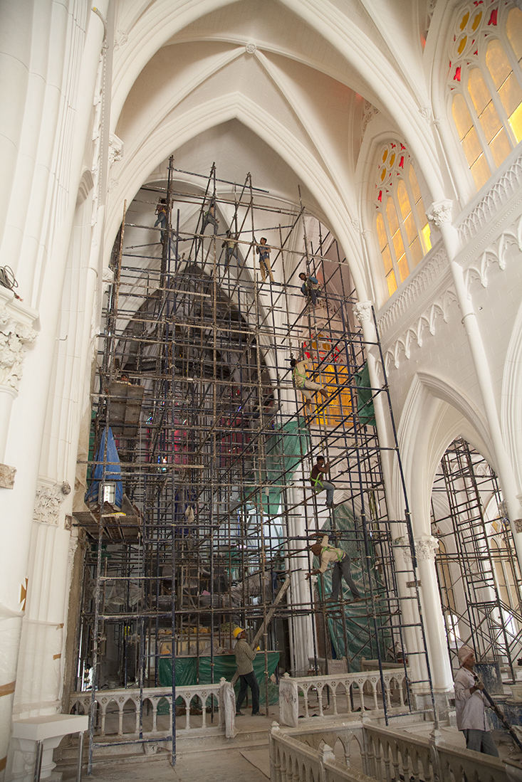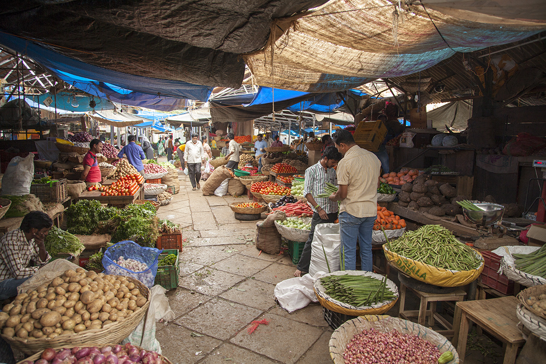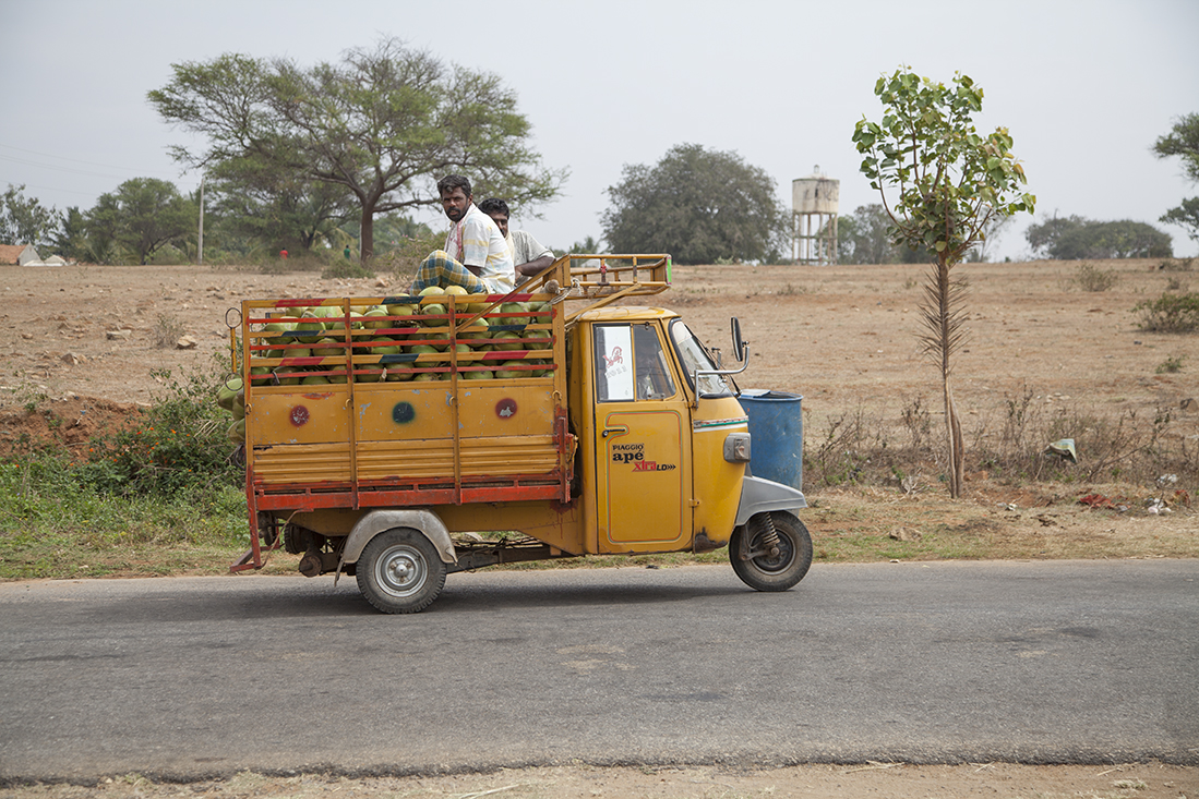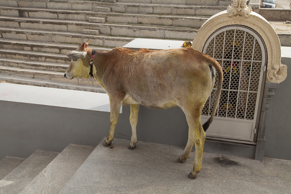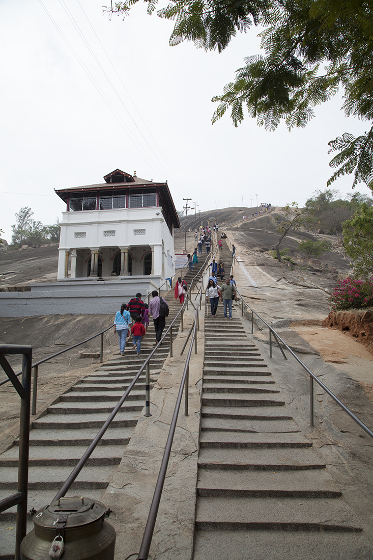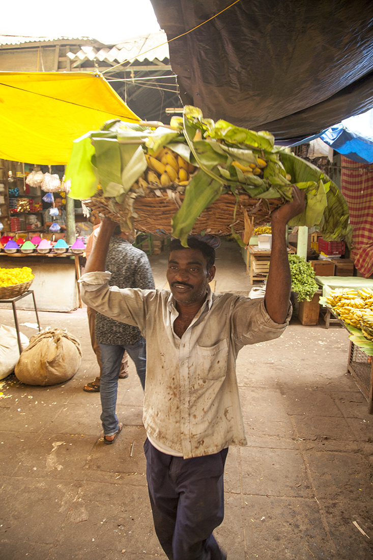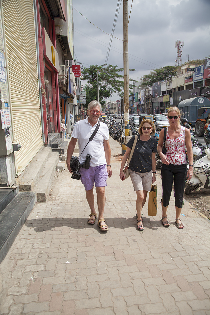 De laatste dag in Mysore en de laatste dag met Prathap was aangebroken. Eerst nodigde Prathap ons nog even uit om de drivers-bathroom te bekijken. Deze verdiende eerder de naam varkensstal en dat hebben de manager dan ook laten weten. Toen de auto in om op Chamumdi Hill een hooggelegen tempel te bekijken. Het was echter zo druk dat we het maar bij een rondwandeling door het dorp hebben gelaten. Beneden gekomen dropte Prathap ons bij de fruit- en bloemenmarkt en bekeken we nog een bekende kerk in Mysore. Vlakbij het hotel stapten we uit de auto om nog even wat indrukken op te doen. Louk kocht nog snel een paar echte Indiase openluchtnikes.