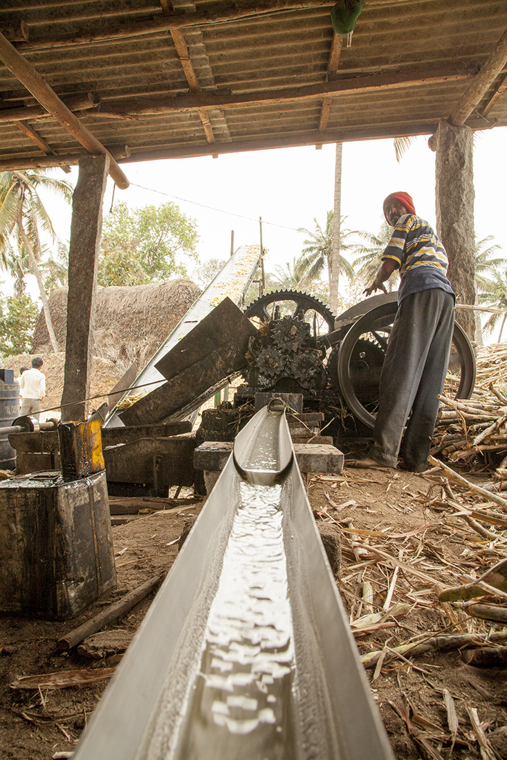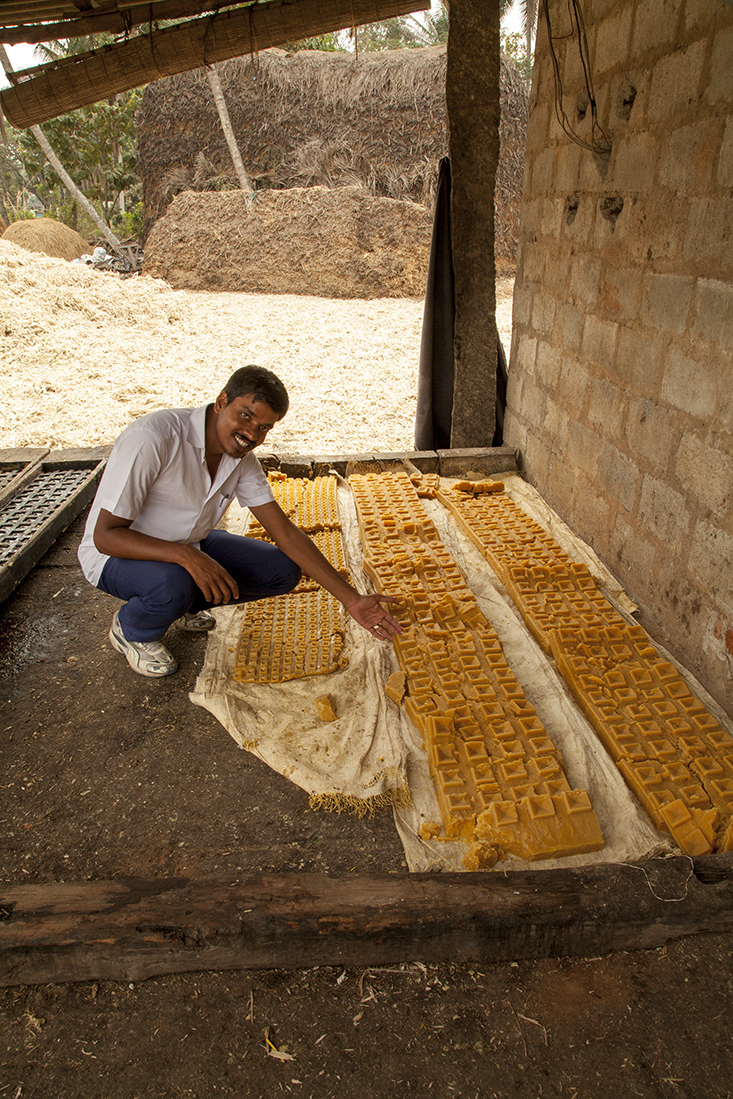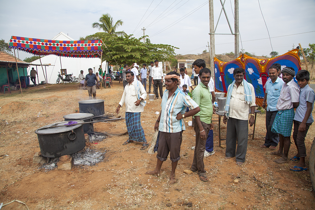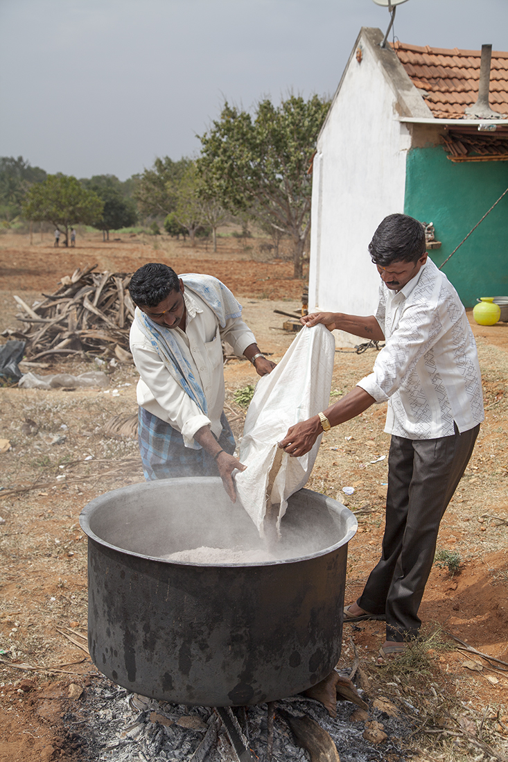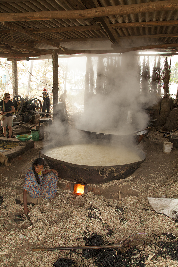 Onderweg blijkt een dorpsfeest georganiseerd te gaan worden. De voorbereidingen zijn in volle gang en grote pannen staan op het vuur om de vele gasten van eten te voorzien. Ook hier wandelen we met Prathap natuurlijk even binnen om te fotograferen en filmen. De dorpsmuzikant haalt op gegeven moment zelfs z'n klarinet te voorschijn om een riedeltje te spelen. Voor de centjes, legt Prathap later uit. Nog iets verder richting Mysore stopt Prathap ineens bij een rietsuikerfabriekje, waar onder erbarmelijke omstandigheden suikerriet wordt geperst en gekookt. Het uiteindelijke resultaat zijn blokken suikerriet.