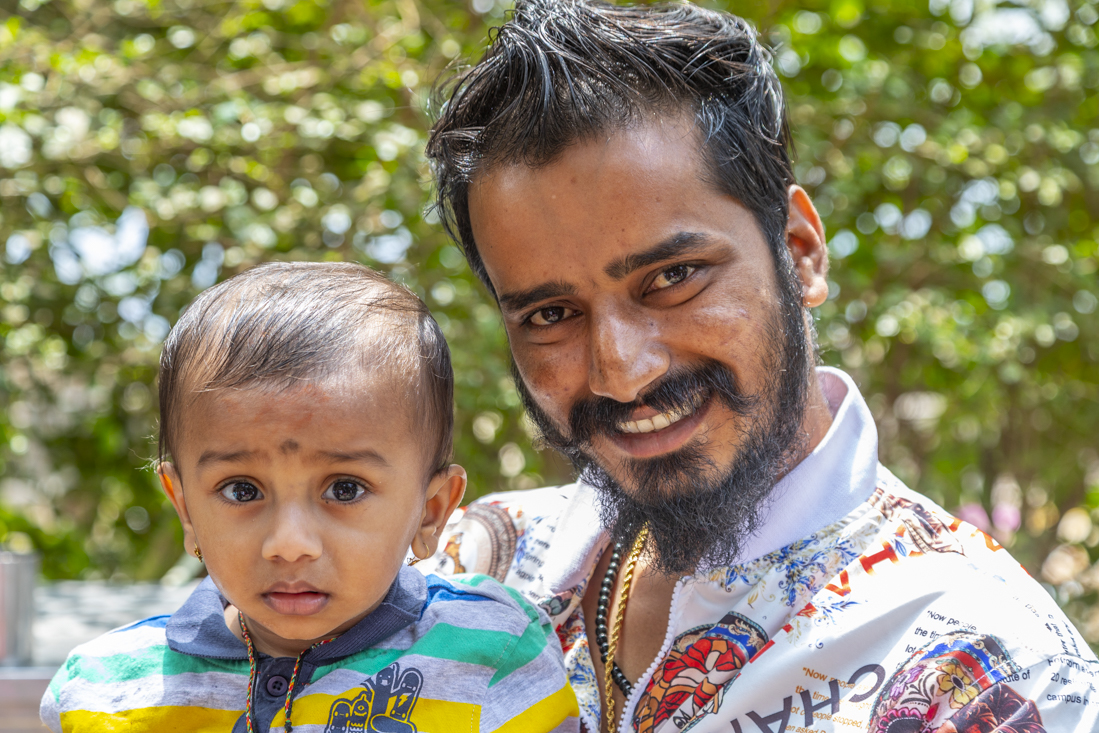 Driver Raju had ons al verteld dat hij oorspronkelijk uit het noordelijke Lucknow kwam. Ondanks dat hij al vele jaren in Maharasthra rond reed, wist hij eigenlijk nog steeds niet de weg te vinden. Met wat hulp van ons reden we dan eindelijk Mumbai uit richting Lonavala, waar we een kleine 2 uur later arriveerden. Ahaa, links zien we ons hotel The Fern al liggen, maar Raju zegt niets en rijdt er voorbij. Vraagt aan verschillende voorbijgangers naar de weg en veel later blijkt dat hij ons ƩƩrst naar de Karla caves brengt. Okee.... Op het zeer smalle bergweggetje naar de Karla caves is het onvoorstelbaar druk. 200 M. voor de top zit er geen beweging meer in. Wij besluiten uit te stappen en verder te lopen. Na een flinke klim over een oneindig lange trap, met aan weerszijden winkeltjes, eettentjes enz. bereiken we de ingang van de caves. Al bij het kopen van een toegangskaartje begonnen de selfie-of-foto verzoeken al. En sommigen kan je gewoon niet weigeren, zoals de vader met z'n schattige dochterje (foto 1). Tijdens het bekijken van de grotten viel ons de enorme rij Indiƫrs op, die achter op het terrein een gebouw ingingen. Op een trap kon ik een foto maken van de binnenzijde van het gebouw, waar ze met z'n allen in tussen hekken stonden om zich uiteindelijk ergens te laten zegenen?! Daar zijn we niet meer achtergekomen. Via dezelfde trappen daalden we weer af naar de parkeerplaats en vonden iets later op de weg naar beneden Raju, die het allerlaatste parkeerplekje had gevonden. In het dorp beneden vond Raju een perfect lunchadresje.