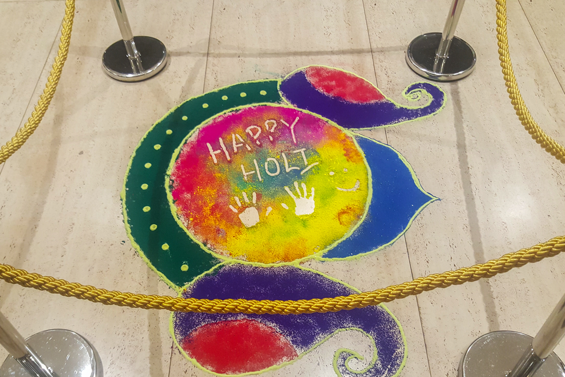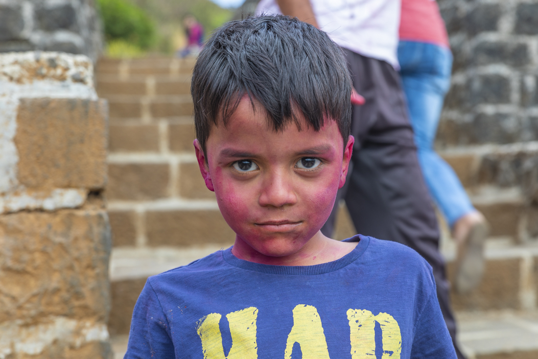 Hierna door naar de Bhaja caves. Ook hier weer een trap naar boven, gelukkig wel iets korter en veel rustiger. Onderweg al de eerste Happy Holi kleuren bij een klein bezoekertje. Na het bezichtigen van de caves op weg naar het hotel. Onderweg vertelt Raju dat onze touroperator zijn bedrijf niet meer heeft betaald en het de vraag is of hij kan blijven. Tot overmaat van ramp blijkt ook het hotel maar voor 1 nacht betaald te zijn. Gelukkig schiet medewerker Pratik te hulp en belt diverse malen met de touroperator. We moeten ons geen zorgen maken, stelt hij ons gerust. Dat doen we stiekem wel een beetje. 's Avonds gaan we maar eens wat eten bij Restaurant Peacock, de buren van het hotel.