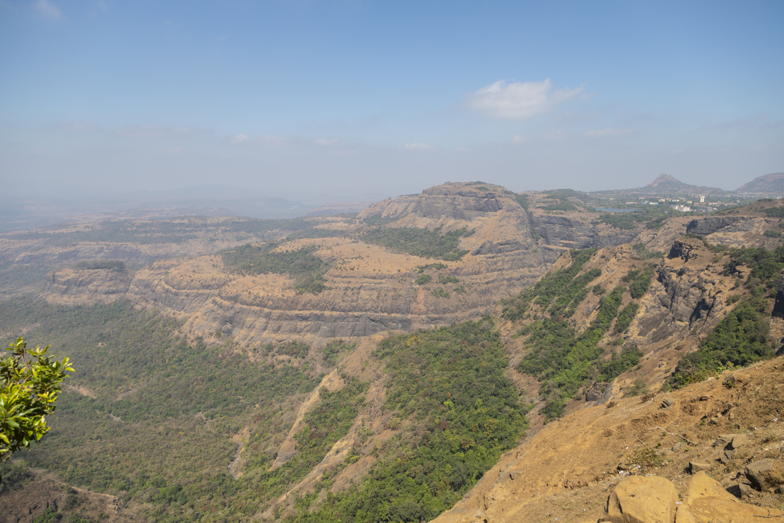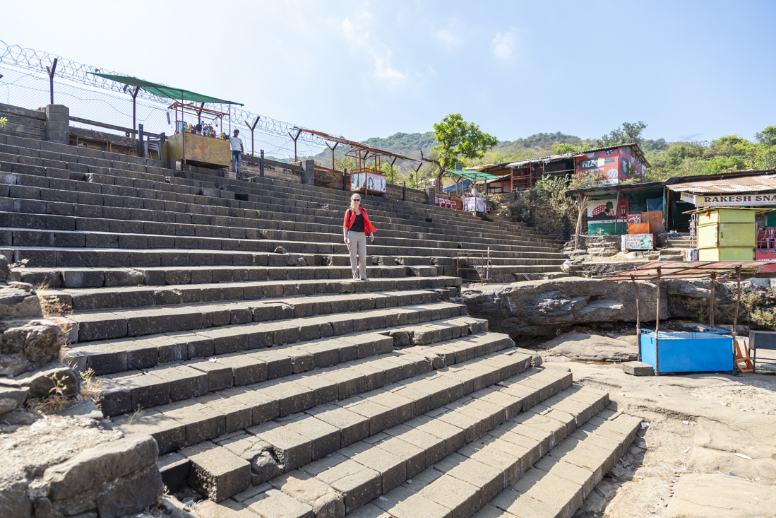 De volgende dag staat er een bezoek aan Khandala en de Bhushi dam op het programma. Helaas blijkt dit alleen maar interessant te zijn tijdens het regenseizoen, als het water de trappen afloopt en de vele bezoekers zich daar vermaken in het water. Nu beetje dorre boel. We rijden nog even de berg op naar het uitzichtpunt Lion's Point.
