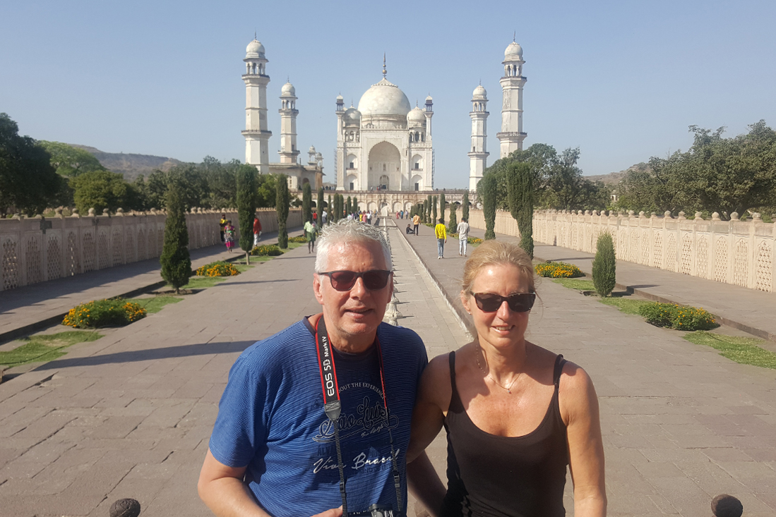 's Middags stond Andrew alweer voor de deur. Eerst naar de Panchakki (volgens de reisinformatie een 'stunning watermill'). Na het netjes betalen van de toegangstickets hebben we rondgekeken, maar deze indrukwekkende watermolen nooit gezien, tenzij het de muur was waar wat water langs naar beneden liep. Maar ja, dat heeft onze garage ook.... In de buurt nog even wat rondgekeken en foto's gemaakt. Onder andere van de plaatselijke bakker, die er op stond dat we 2 broodjes van hem aannamen. Hierna naar de kleine versie van de Taj Mahal in Agra, namelijk de Bibi ka Maqbara (voltooid in 1678). Terug bij het hotel afscheid genomen van Andrew. Hij verwachtte niet dat hij ons morgen naar de Ajanta Caves zou brengen. Diezelfde avond krijgen we een mail van de TO met als bijlage schrijven van het Indiase Government i.z. beperking binnenlandse reizen toeristen. Het coronavirus heeft ook India in z'n greep. We proberen informatie in te winnen bij het Nederlandse Consulaat in Mumbai. Erg aardig, maar geen enkele zinnige informatie! We besluiten ondanks de spanning maar even af te wachten.