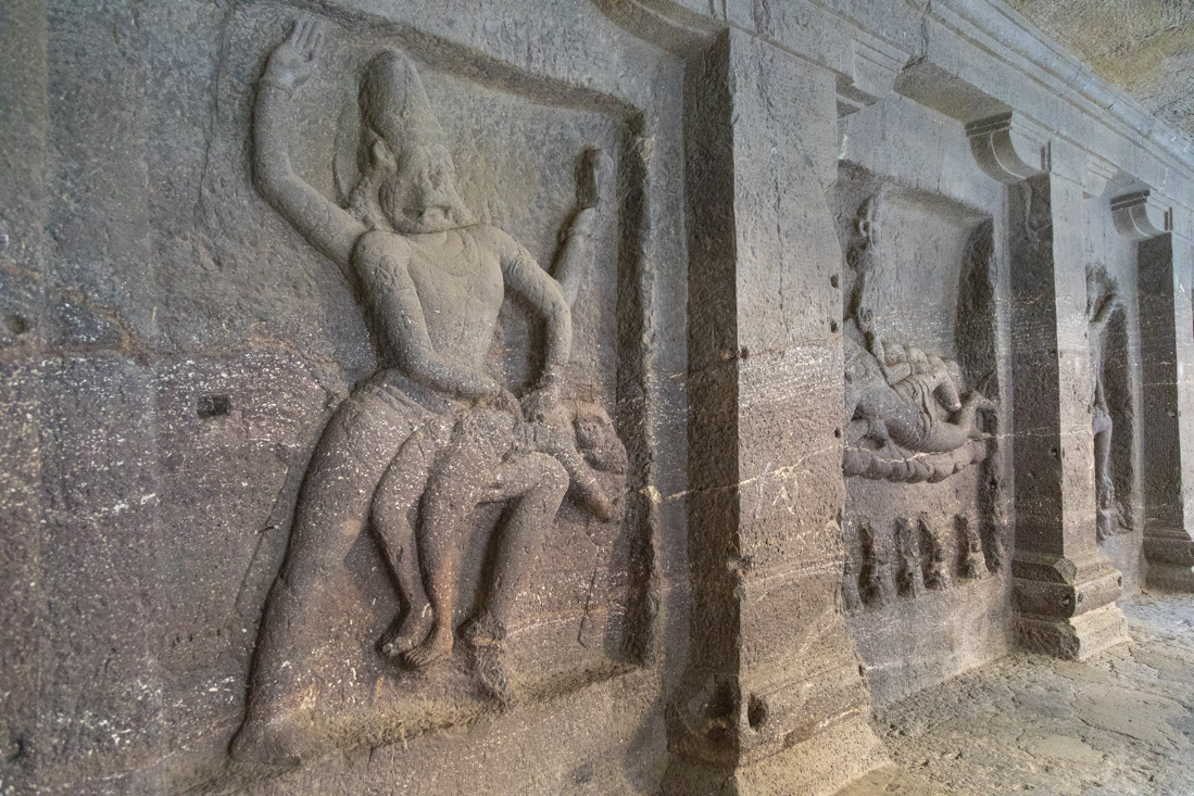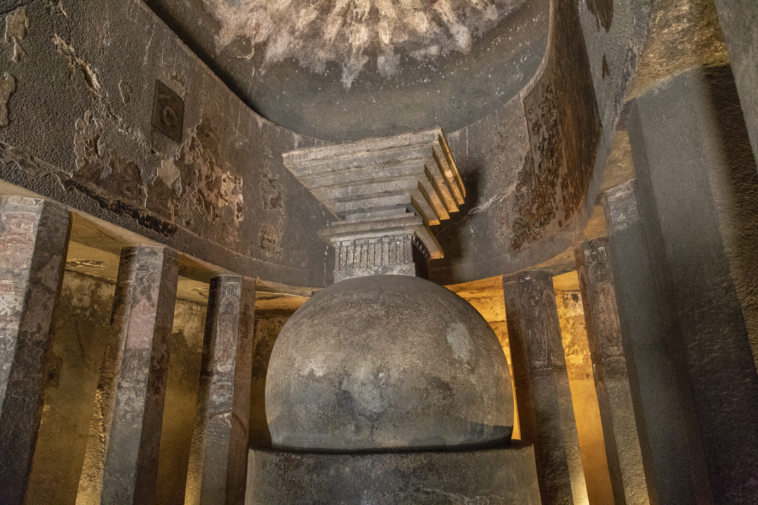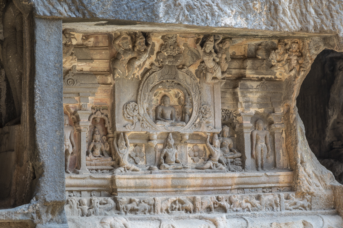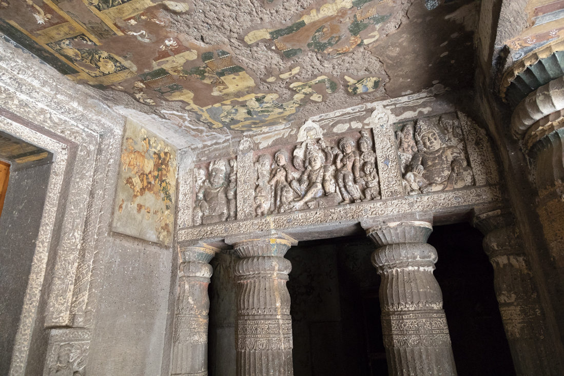 De volgende dag gaan we gewoon naar de Ajanta Caves (Unesco site). Om iets na zevenen staat driver Vicky voor de deur. Het belooft een lange rit te worden. Slechts 125 km., maar zo'n beroerde weg dat je er 3 uur over doet. Nou dat klopte aardig. Aangekomen moesten we de verkopers van allerhande rotzooi van ons afslaan. Zij verkochten niets meer, omdat alle toeristen inmiddels wegbleven. Met een krakkemikkige shuttle bus werden we vervoerd naar de ingang van de caves. De grotten liggen in een hoefijzer vormig ravijn. Het complex omvat 28 boeddistische grottempels gebouwd tussen de 2e eeuw v Chr. tot de 6e eeuw na Chr. en bevat een schat aan oude kunst zien. Een flinke wandeling van een uurtje of 2 en veel foto's later waren we terug bij de ingang. Via dezelfde schuddende weg weer terug naar Aurangabad.