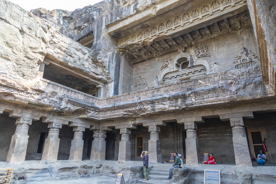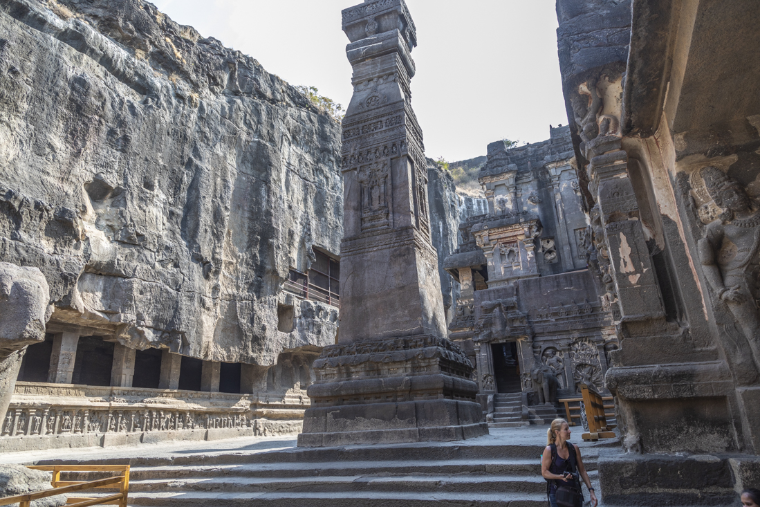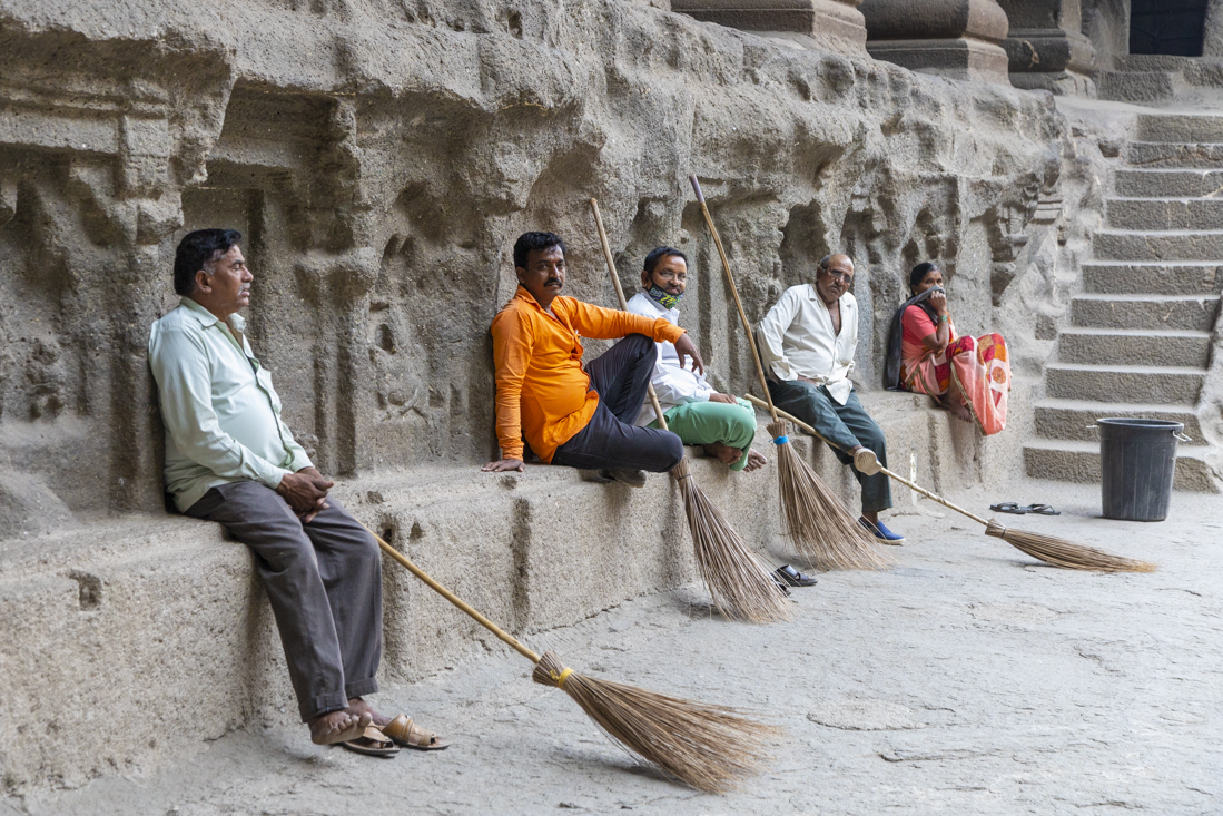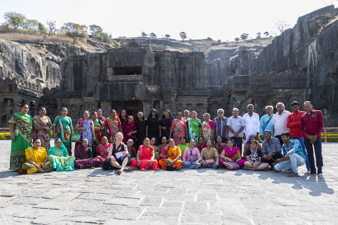 De volgende dag ondanks de steeds vervelender berichten over het reizen in India toch besloten om naar de Ellora Caves te gaan (ook Unesco site). Dat was een goede beslissing, want twee dagen na ons bezoek sloot ook deze voor bezoekers. Bij de Ellora caves waren ook de toeristen massaal weggebleven. Wel handig voor de foto's. Bij de ingang ontmoeten we een grote groep uit Gujarat, die persé met Agnes op de foto wilde voor de indrukwekkende Kailashtempel (8e en 9e eeuw na Chr.), het hoogtepunt van Ellora. Okee. Hierna onze wandeling gestart langs de indrukwekkende caves, waarvan er 34 open zijn voor publiek. Er zijn 12 boeddhistische en 16 hindoeïstische grottempels uitgegraven tussen 500 - 870 na Chr. en nog 5 jaïnistische grotten uit 800-1100 na Chr. We hebben ze niet allemaal bekeken, maar waren uiteindelijk een uur of vier onder de pannen. Prachtig! Op de terugweg de 750 treden naar het Daulatabad Fort maar even overgeslagen. Pufheet (35 C) en onze voeten weigerden dienst. Terug in het hotel even snel opgefrist en met de TukTuk nog even naar een plaatselijke markt. Dat hier weinig van die witten komen was duidelijk. Ze vielen bijna van de brommers af.