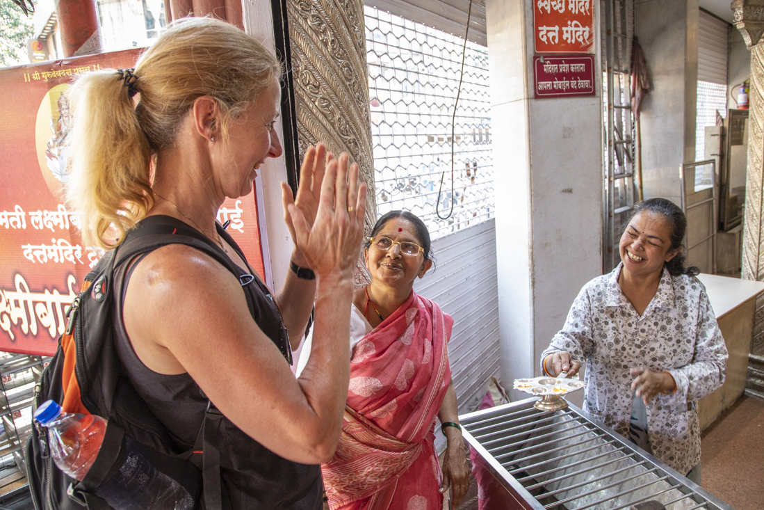 Koffers dicht en alvast meegenomen naar beneden. Na het ontbijt werden we begroet door een nogal onverschillige figuur, die onze chauffeur naar Pune bleek te zijn. Gesjellig. Koffers in de auto, gezwaaid naar de portier en op weg naar Pune. Deze chauffeur hield er een op z'n zachtst gezegd nogal bijzondere rijstijl op na. Zo hard mogelijk, constant bellen en zelfs videobellen. Toen hij tijdens een van dit soort acties ook nog bijna op een stilstaande auto knalde, was ik er klaar mee. Hem tot de orde geroepen en de TO laten weten dat we met deze man niet verder wilden naar Mumbai. Was hij al niet spraakzaam, hierna was hij alleen nog maar aan het bellen. In Pune werden de koffers uit de auto gehaald door het hotelpersoneel van het Lemon Tree Premier Hotel en zijn wij zonder gedag te zeggen weggelopen. Wat een halve gare!