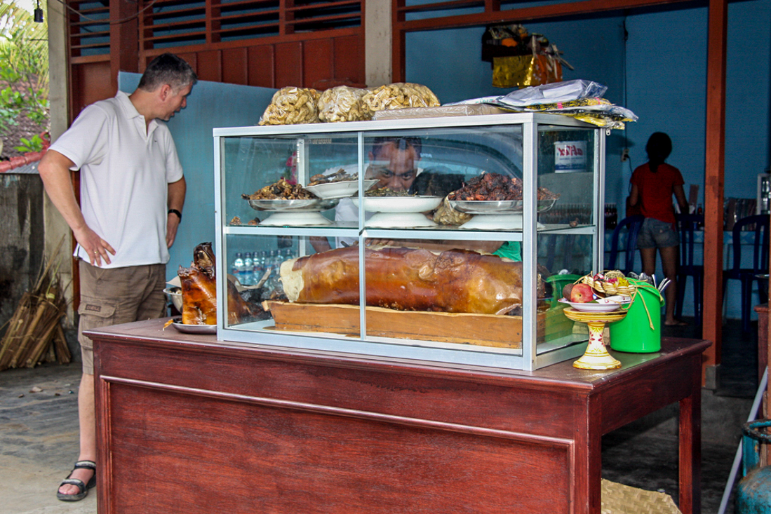 Zaterdag 13 februari vertrokken we vanuit Sanur naar onze volgende bestemming in Candidasa. Ook dit keer was Made weer onze chauffeur. We vertrokken bijtijds, omdat we onderweg nog verschillende zaken wilden bekijken. Onze eerste stop was in Butubulan om een Barongdans te bekijken. Ook een Batikweverij en een zilversmid in Celuk stonden nog op het lijstje. Daarna zijn we doorgereden naar Klungkung om het Koninklijk paleis te bekijken en hierna verder naar Candi Beach Hotel in Candidasa. Een aantal keren hebben we gebruik gemaakt van de shuttlebus naar Candidasa om het dorpje te bekijken en te lunchen.