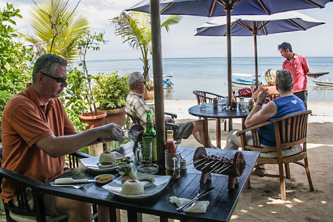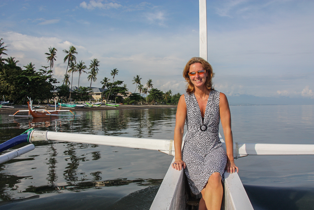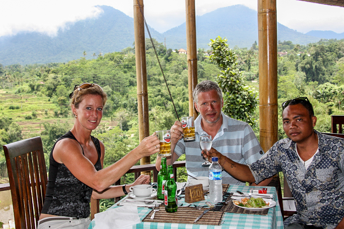 Maandag 15 februari hebben we vanuit Candidasa een rondrit gemaakt en het Waterpaleis in Taman Tirtu Ganga bekeken en hierna via Amed langs de kust naar Serraya. Langs deze hele kust liggen prachtige vissersdorpjes en baaien met ontelbare vissersbootjes. Natuurlijk moest ook het waterpaleis in Taman Ujung worden bekeken en als laatste het oorspronkelijke dorpje Tenganan. Woensdag 17 februari werd het tijd om weer te verkassen naar een volgende bestemming. Via een serveerster in een restaurant in Candidasa vonden een chauffeur die ons via de rijstvelden in Sideman en Penelokan met uitzicht op het Danau Baturmeer en de vulkaan naar Lovina zou brengen. De kamer in Sunari was lekker ruim en de eerste met een buitendouche (best vreemd om onder de sterren te douchen). De veelbelovende oprijlaan van minstens 1 kilometer en de luxe lobby waren niet helemaal in overeenstemming met rest van het hotel. Het onderhoud was hier en daar flink achterstallig, maar alles was zeer schoon. Waren de mensen in Indonesië al vriendelijk; hier deed men er nog een schepje bovenop.