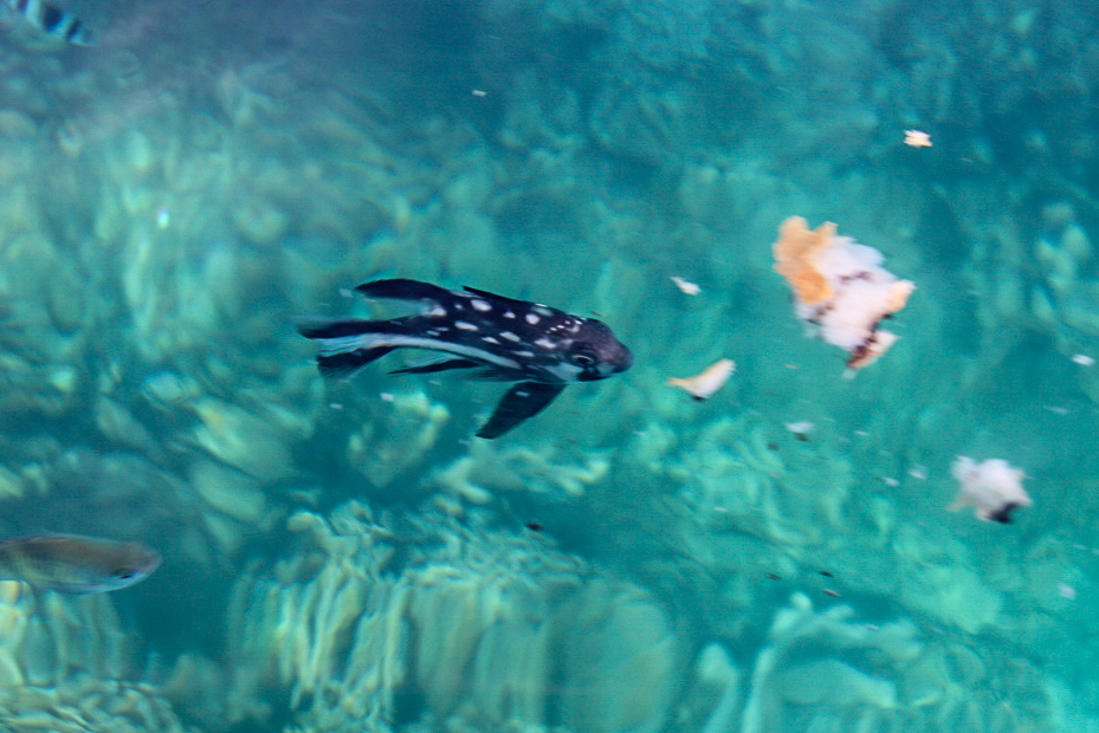 Na een lekkere rustig-aan-dag hebben we met één van de schippers op het strand afgesproken om te gaan snorkelen. Dus moesten we vrijdag extra vroeg op, omdat het dan nog niet te warm zou zijn. Na een klein halfuurtje varen kwamen we aan bij een schitterend koraalrif. Agnes was al snel voorzien van bril en luchtpijpje en na wat oefenen klaar om de onderwaterwereld te ontdekken. Ze was zo enthousiast dat ik niet kon achterblijven en ook maar overboord ben gesprongen en aan het stoeien ben gegaan met bril en pijpje. Tjonge, wat een kleuren!!!