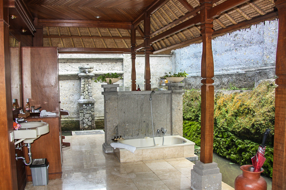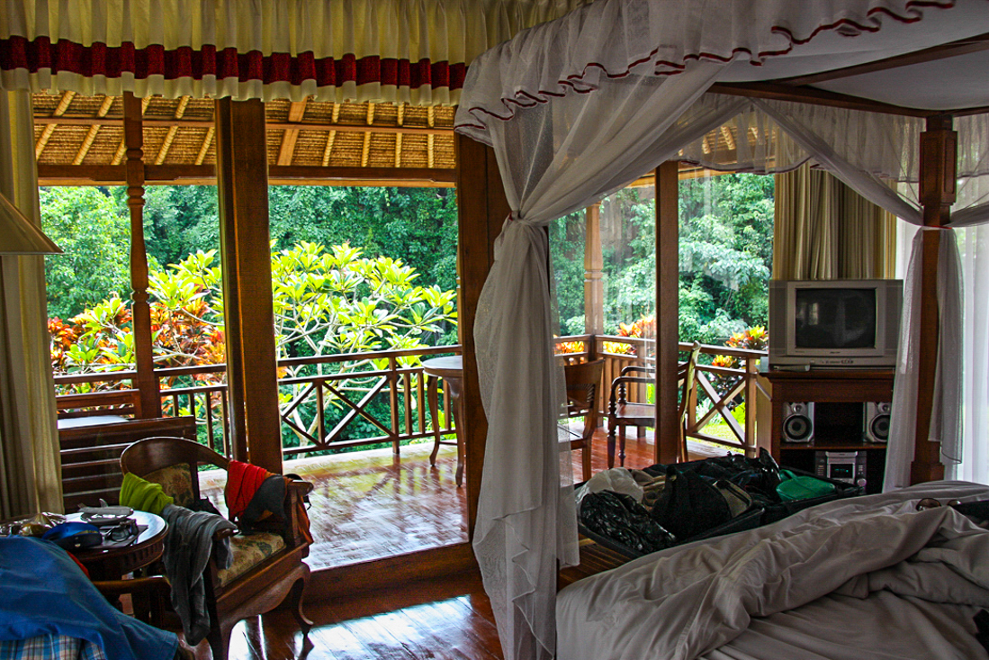 Zaterdag 20 februari stond onze "vaste chauffeur" Made in Lovina om ons naar Ubud te vervoeren. Onderweg hebben we de Gitgit watervallen en de tempel in het Danau Brananmeer bekeken. Made wist een goed lunchadres en was vereerd door de uitnodiging om bij ons aan te schuiven voor het uitgebreide buffet. Heb nog nooit iemand met zoveel smaak gebakken aardappels zien eten, en zoveel....! Aangekomen bij Ubud heeft Made nog even een extra ronde gemaakt om ons alvast de plaats te laten zien en ons hierna bij Santi Mandala afgezet. We kregen een van de schitterende cottages toegewezen, compleet met veranda en buitenbadkamer. Met de shuttlebus zijn we een aantal keren naar Ubud geweest om het plaatsje te bekijken, te lunchen of te dineren. Wat een mooie omgeving.