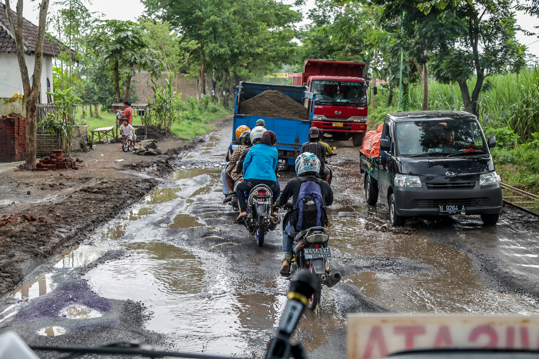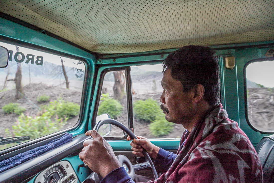 Vandaag was de route niet zo lang en zouden we al bijtijds op onze nieuwe bestemming zijn. Maar ja, dan moet je de weg weten óf een kaart hebben. En laat dat nou net niet in onze bus voorkomen. De heren maar weer even met de navigatie bijgestaan om Malang uit te komen. Onderweg draait de chauffeur voor de verandering maar weer eens een weggetje in, wat uiteindelijk zou uitkomen op een bergweg die alleen met jeeps te berijden is. Opnieuw ingegrepen, waarna de bijrijder uitstapte en de weg ging vragen. Nu zou het toch wel goedkomen?