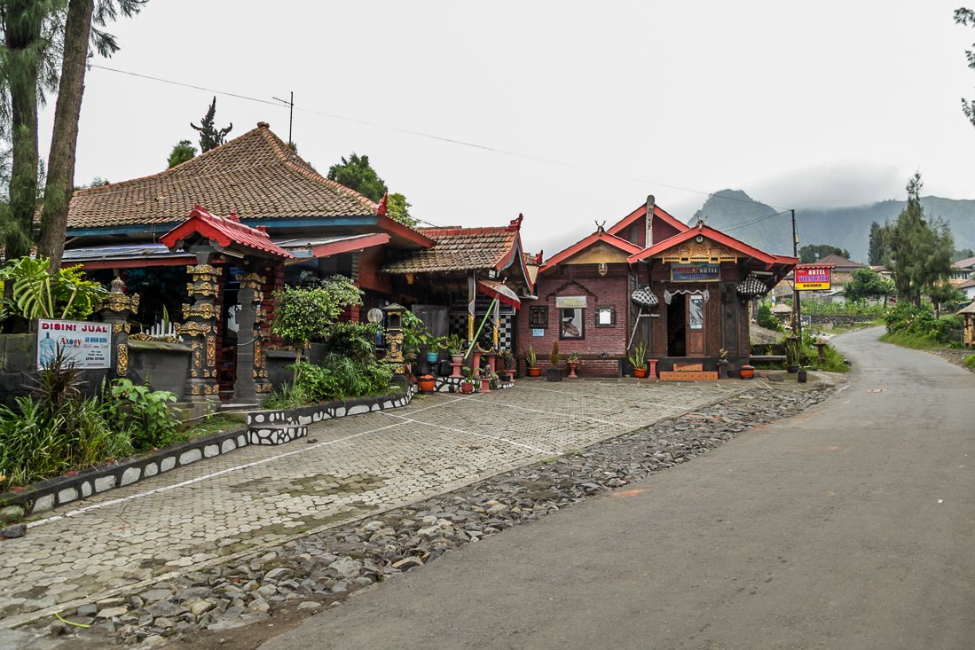 In het heel erg kleine hotelletje waren nog een aantal collega-kaaskoppen en een groepje Belgen. In de wijde omgeving kon je nergens anders eten, dus aten alle gasten bij Yoschi. Het was reuze gezellig en het eten erg smaakvol. Behalve voor Hanneke, want die had iets besteld dat het meeste in de buurt kwam van warm behangplaksel met stukjes kip. Zij bestelde hierna toch maar een Soto Ajam. Onze Belgische medegasten hadden plotseling een enorme stapel winterjassen op hun tafel liggen. Navraag leerde ons dat ze bij Yoshi van alle markten thuis waren en zelfs jassen in de verhuur hadden voor de bezoekers aan de Bromo vulkaan. Iets later stonden wij dus ook bij de balie om voor de zekerheid maar een jas uit te zoeken. Daarna maar hƩƩl vroeg naar bed, want rond een uur of half vier zou de wekdienst langskomen.