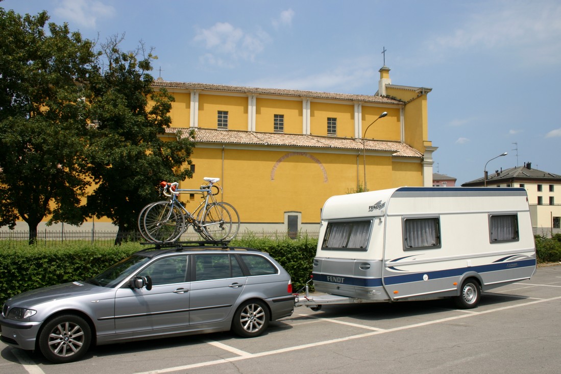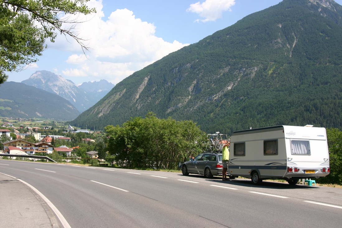 Zaterdag 1 juli vertrokken we om een uurtje of negen uit Ellenberg. Er was weinig verkeer op de A7 en de Fernpass, dus reden we al bijtijds onze vaste P-plaats bij de skilift voorbij Nauders op voor de lunch. Hierna nog maar een klein stukje tot de grens Ʃn het hoogste punt, zodat we alleen nog maar naar beneden moesten om bij ons doel voor vandaag uit te komen. Ondanks de zaterdag, waren er nauwelijks auto's onderweg, dus zaten we al vroeg op de camping in Naturno voor onze caravan te genieten van het zonnetje. 's-Avonds heerlijk gegeten in het dorp. Helaas geen live blaasmuziek dit keer, maar wel voetbal op de televisie in het restaurant. We hadden bewust gekozen om de zondag door Italiƫ te rijden. Alle Italianen liggen dan aan het strand en de Autostrada heb je dan voor jezelf. Omdat we pas na vieren de camping in Vada op konden, vertrokken we pas om een uur of tien uit Naturno. Evenals vorig jaar hebben we bij Mantova een doorsteekje gemaakt naar Parma (even geen autobaan). Halverwege vonden we een compleet lege parkeerplaats in een dorpje bij de kerk en hebben hier in de schaduw heerlijk onze broodjes opgegeten. Na Parma wordt het landschap steeds mooier en is een feest om te rijden. Precies om 17:00uur stonden we bij de receptie van Rada Etrusca.