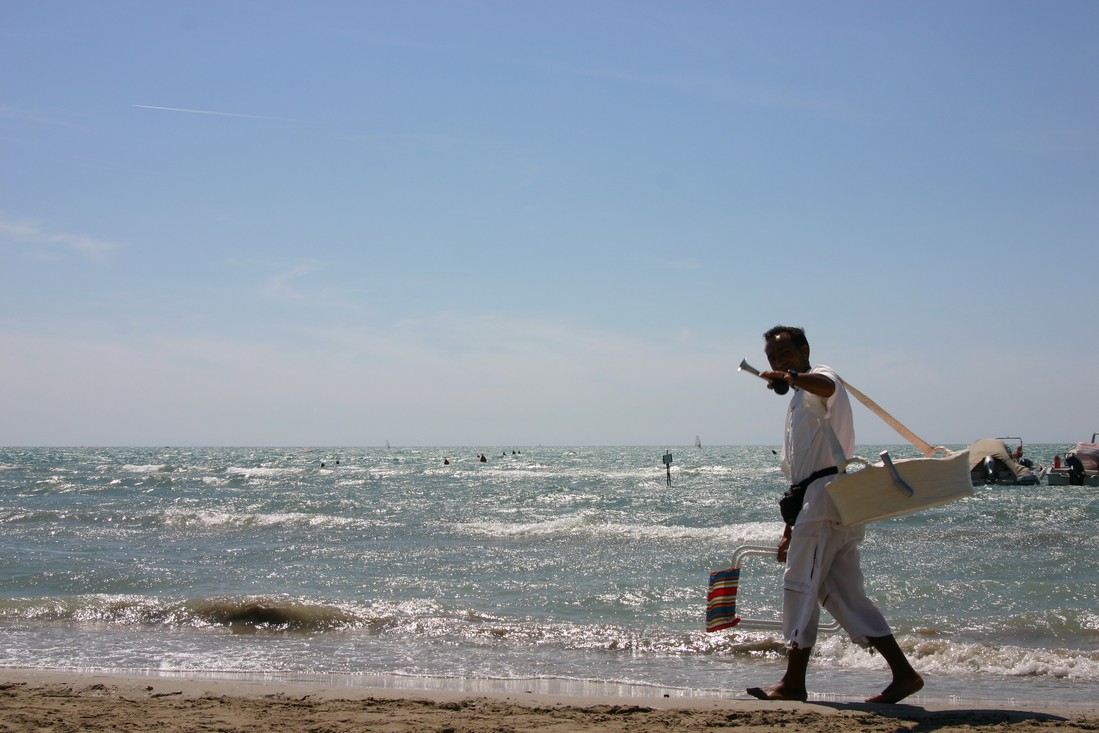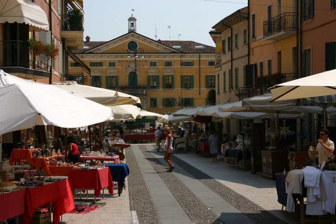 De temperatuur was geweldig, maar nodigde niet echt uit om dorpjes te gaan bekijken. Gelukkig was het strand op slechts 20 meter afstand, dus verhuisden we dagelijks onze stoelen en parasols daarheen. Agnes heeft nog wel een poging gedaan iets van de omgeving te zien (zie foto's). Ik hield het maar bij lezen op het strand. Zondag 23 juli werd het tijd om wat noordelijker te gaan. We waren zo vaak door Mantova gekomen, dat we besloten hier een camping in de buurt te zoeken en de stad te gaan bekijken. Het was alleen zo verschrikkelijk heet in de po-vlakte, dat we de omgeving van de camping met de auto hebben verkend. Met de airco op -20.