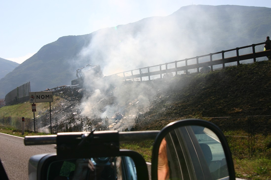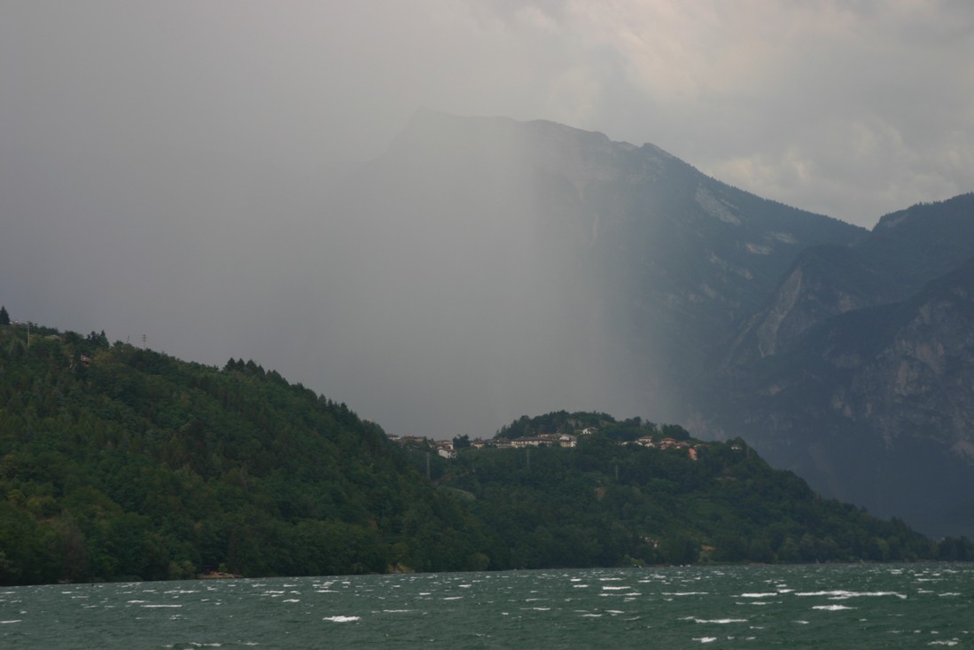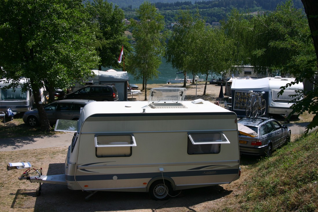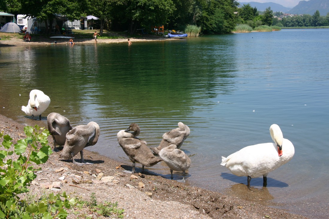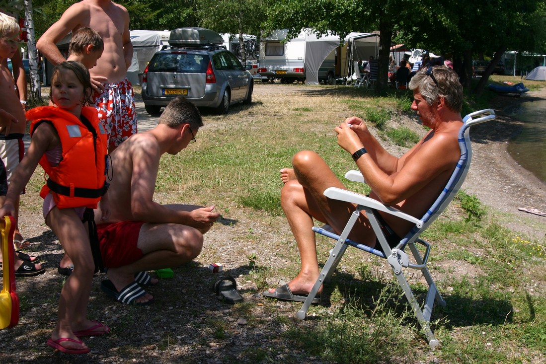 Woensdag wilde ik de jonge zwanen fotograferen en werd op een geweldige manier in m'n teen gestoken door een wesp. De overbuurman kwam aanstormen met stoel en vacuumpompje. Misschien valt het mee. Later op de dag begon het licht te onweren boven de bergen aan de overkant. Het zou zo'n vaart niet lopen, dacht iedereen. Toch maar de luifel vast opgeborgen. En dat was maar net op tijd, want een uur later begint het eerst zachtjes te waaien om kort daarna aan te wakkeren tot een geweldige storm. De naast gelegen zeilschool had z'n handen vol om de jeugdige zeilers van het water te halen. Donderdag had m'n teen de vorm aangenomen van een authentieke Bratwurst. Takkewesp.....!! Na de lunch in de buurt van Imst heeft Agnes het stuur overgenomen en heb ik de hele Fernpas met m'n teen voor het ventilatierooster in de auto gezeten. Misschien zou een bevroren teen minder vervelend zijn. Onze ƩƩn-na-laatste nacht hebben we gebivakeerd in Nesselwang en de volgende dag doorgereden naar Soest (D). Zaterdag 29 juli weer thuis. Laat het nu maar regenen...... (grapje).