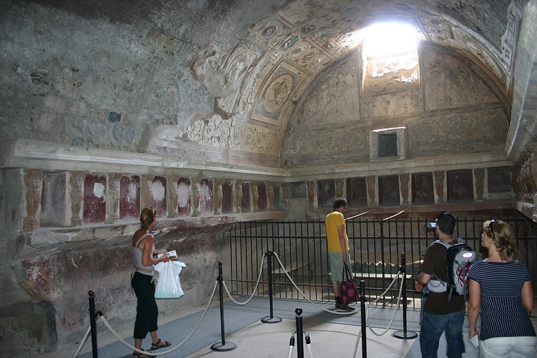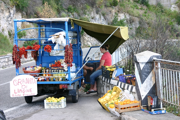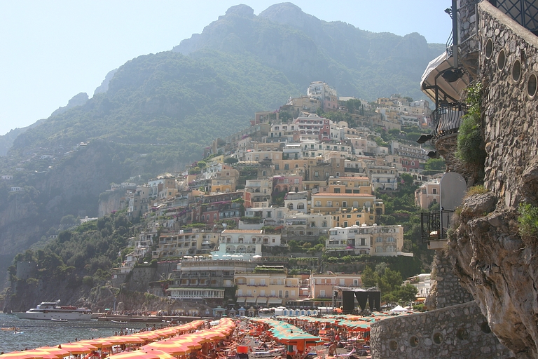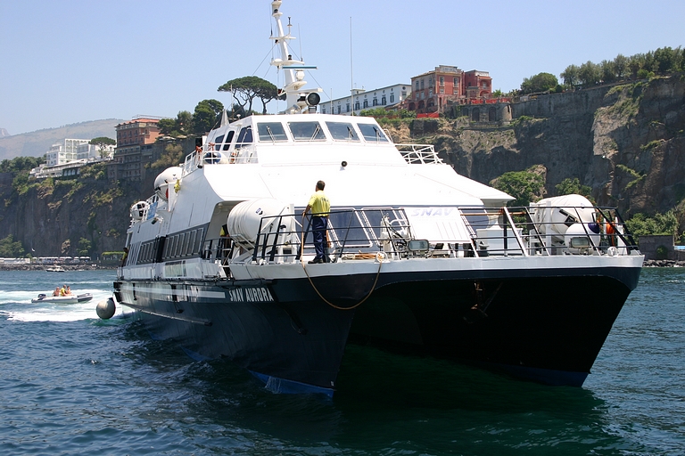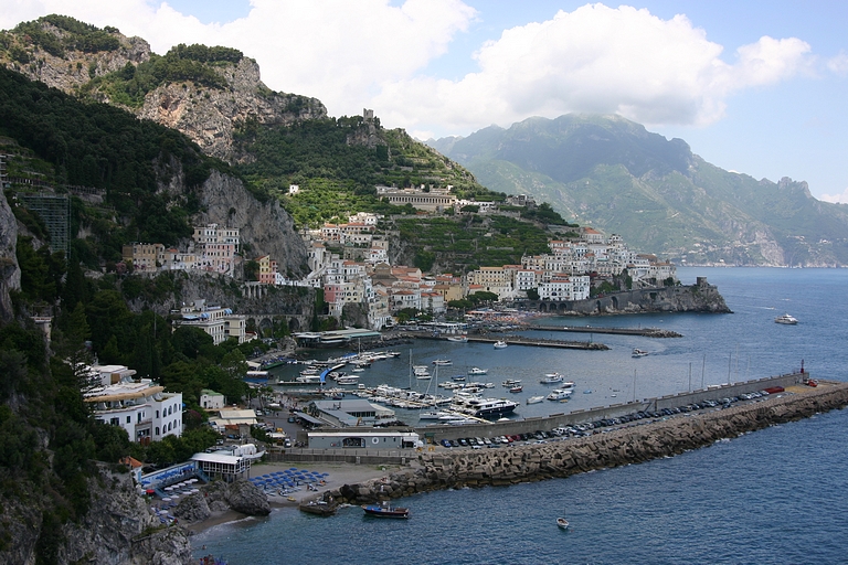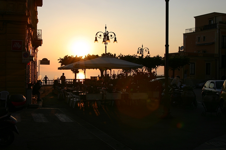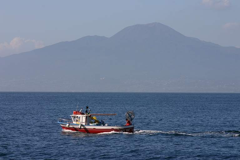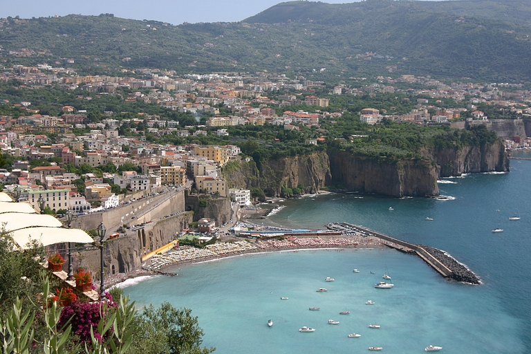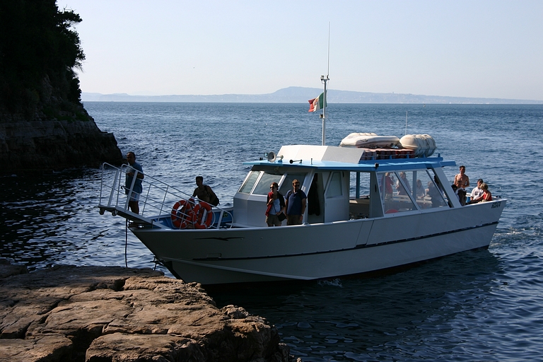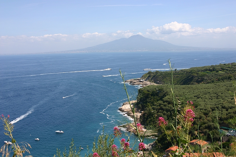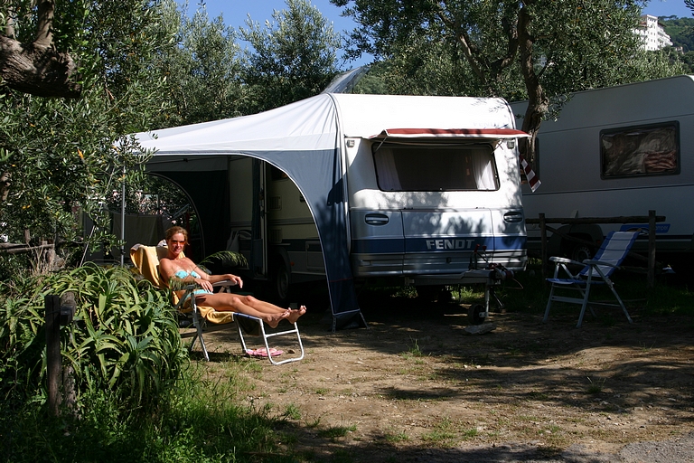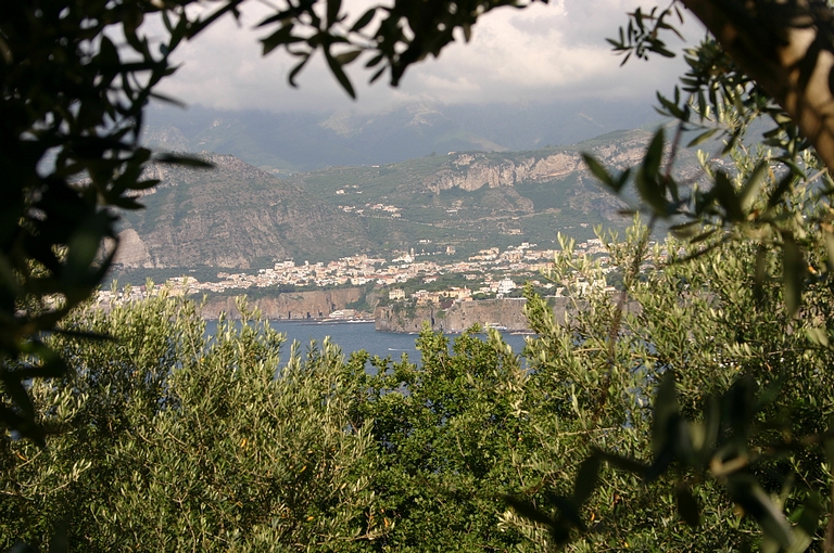 De door ons uitgezochte camping lag aan de andere kant van Sorrento, dus moesten we op zaterdagmiddag met sleurhut en al door de stad. De beschaving schijnt hier ooit ontstaan te zijn, maar toen hadden de Sorrentenaren nog geen gemotoriseerd vervoermiddel tot hun beschikking! Rijden de Italianen in de meer noordelijke provincies al bijzonder, hier heeft het rijgedrag asociale vormen aangenomen. Iedereen doet wat hij/zij wil. Maar na een inspannende rit bereikten we zonder krassen of deuken camping Santa Fortunata. Ook hier bleek het voordeel van een vakantie buiten het seizoen. De mooiste plaatsen mét uitzicht op Sorrento. Naast een rit langs de schitterende Amalfikust, hebben we natuurlijk Sorrento en Pompei bezocht en uitgewaaid tijdens een boottocht naar Positano met een jetaangedreven catamaran. En niet te vergeten de overheerlijke pasta's in restaurant Tritone in Massa Lubrense