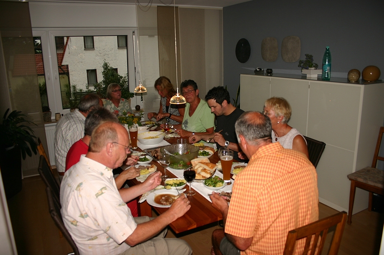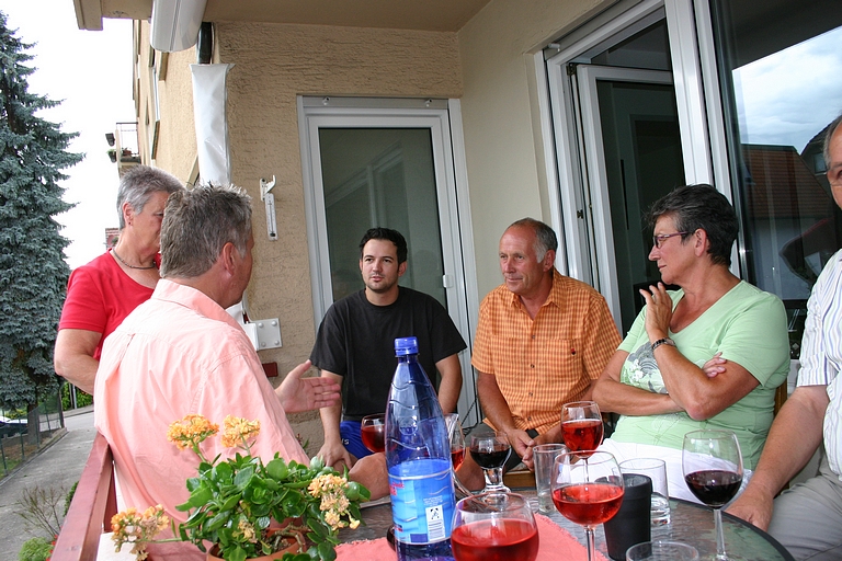 Omdat we donderdag 3 juli in Altbach aanwezig wilden zijn om de verjaardag van Eberhard te vieren, hebben we een camping daar in de buurt gezocht, zodat we donderdags niet zo ver meer zouden hoeven te rijden. Camping Lauberg in Römerstein bleek handig te liggen. Waren de gasten op Tre Archi in begin van de vakantie thuisgebleven vanwege de kou, hier was het net andersom. De eigenaresse vertelde ons dat het de laatste 5 dagen zo'n 35 graden was geweest. Een complete camping en sanitairgebouw voor onszelf. De volgende dag hoefden we nog maar een kilometer of 40, voordat we Altbach indraaiden. Na het installeren van caravan werd het tijd voor een koele sekt op het balkon. Omdat Eberhard zijn verjaardag niet in het weekend vierde, was de groep genodigden dan ook wat kleiner, maar zeker niet minder gezellig. Het was alweer vroeg voordat we onze vakantiewoning opzochten.