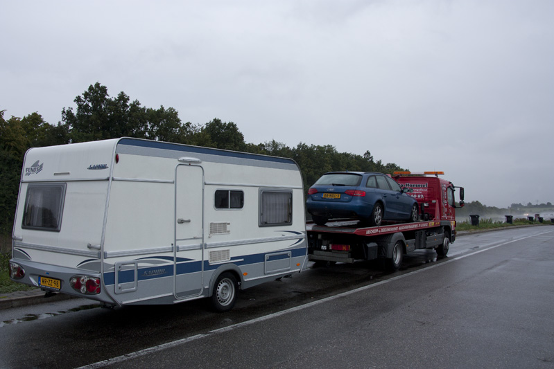 Door een concert met de Bruce Selection op zaterdag 3 september vertrokken we dit keer maar eens op een zondag richting het zonnige zuiden. Om 8.00 uur was de caravan aangekoppeld en reden we Baarn uit. Aanvankelijk wilden we via Würzburg de A7 afzakken, maar toen duidelijk werd dat er op onze geplande route meer dan 10 km. file stond, hebben we bij Frankfurt een slinger aan het stuur gegeven om via Karlsruhe te rijden. Tjonge, wat ging het lekker vlot; we zouden met gemak Illertissen kunnen halen......... Helaas was onze auto het na de flinke klim bij Pforzheim goed zat en gaf er de brui aan. Geluk bij een ongeluk dat dit ca. 50 M. voor een parkeerplaats gebeurde, zodat we hier nog net op konden draaien. Het rode lampje motormanagement en het schuddende motorblok voorspelden niet veel goeds. Na veel telefoontjes met Audi Nederland én Duitsland stond er ruim 2 uur later een afsleepdienst, die ons met caravan en al naar een Volkswagengarage in Pforzheim vervoerde. Na een snelle diagnose werd duidelijk dat we vandaag zeker niet meer verder zouden kunnen en werd er een huurauto voor ons geregeld. Uiteindelijk reden we tegen half acht met onze "duitstalige" BMW camping "Regenbogen" in Bad Liebenzell op. Bij de plaatselijke Italiaan hebben we heerlijk gegeten.