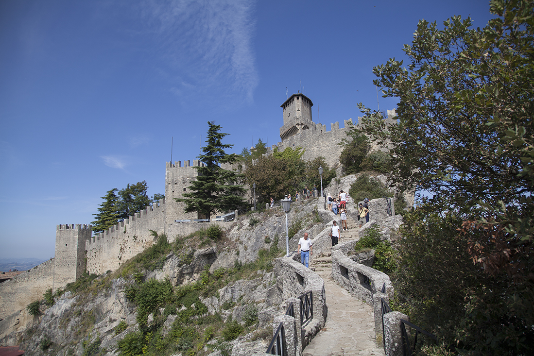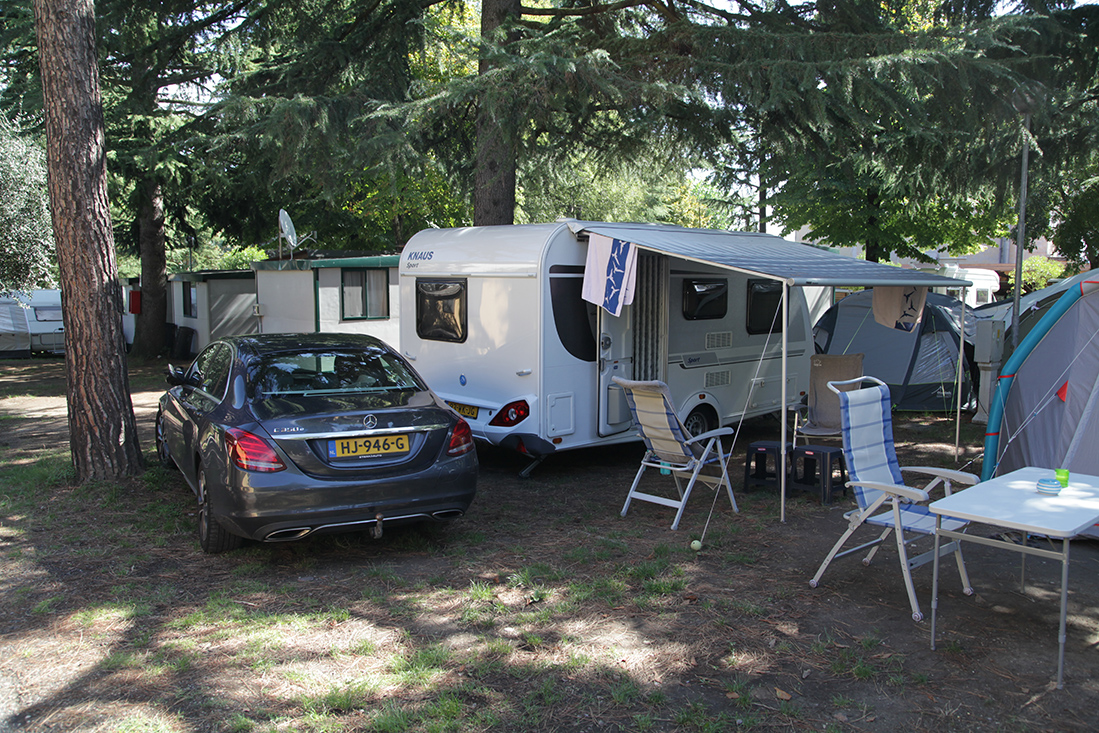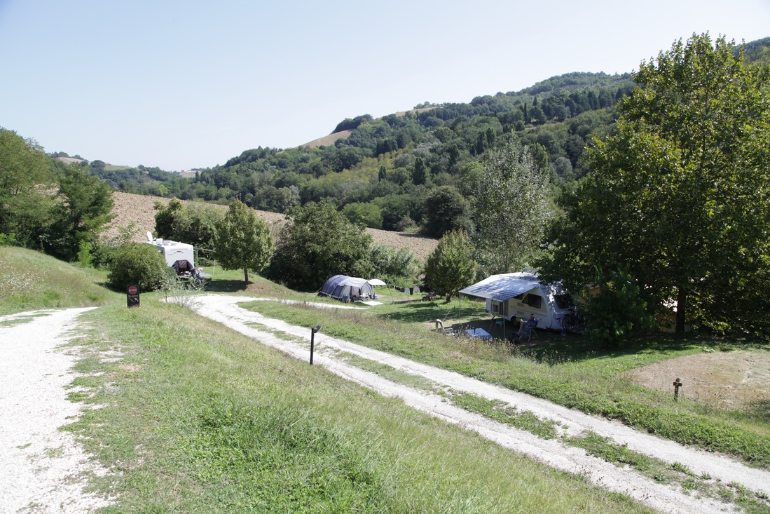 Vanuit de camping hebben we Urbino, Urbania en San Marino bekeken en verder niet zo heel veel gedaan. Het werd zo langzaam tijd om eens naar een Italiaanse camping af te reizen en eens met mensen te praten. De meeste bezoekers van deze Nederlandse enclave hadden hiervoor namelijk weinig belangstellng. Onze later gearriveerde buren met een mislukte blaffende minikrokettenfabriek verschuilden zich zelfs gedurende de dag achter het enige bosje op de scheiding van onze plekken. Maar wel bij ons vertrek hun stoelen strategisch neerzetten, zodat ze ons in de gaten konden houden..... Brrrrr.