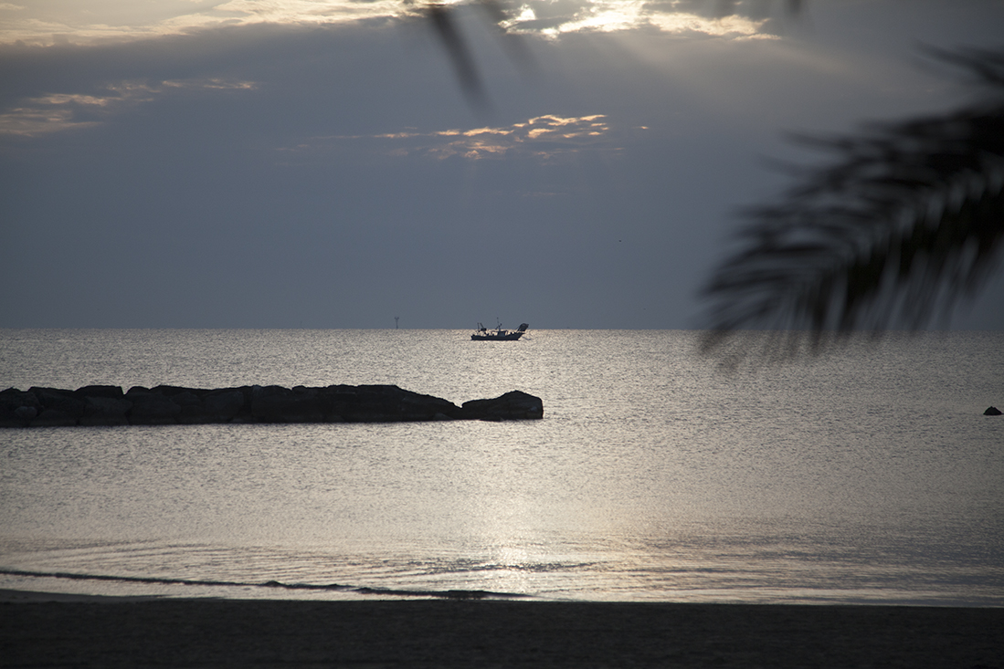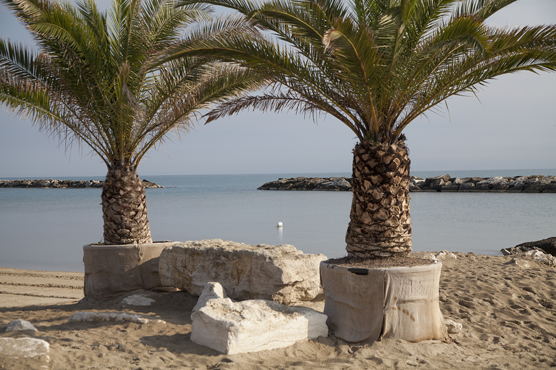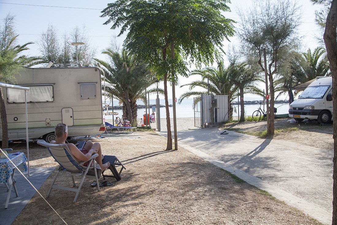 Via dezelfde route reden we op woendag 12 september weer terug naar de A14. Na zo'n 125 km. op de Autostrada verlieten we deze bij Pedaso. We hadden al gebeld met de uitgezochte camping en ze hadden een plekje voor ons. Net voor Cupra Marittima vonden we Camping Calypso aan onze linkerzijde. De allervriendelijkste dame van de receptie wandelde met ons mee om de beschikbare plaatsen aan te wijzen. Tot onze grote verrassing bleken er aan de andere zijde van de spoordijk, dus direct aan het strand, ook nog plaatsen vrij. We kozen direct voor de grotere vrije en nogal zonnige plek op de tweede rij met 'vista sul mare'. Het met de caravan onder het tunneltje doorkomen bleek nog even een lastige. Waarschijnlijk net de verkeerde aanrijroute gekozen. Even creatief met de 'banaan' om de caravan zachtjes van de hoge stoeprand te rijden en klaar was kees. Een klein kwartiertje later zaten we te genieten van het uitzicht tussen de gezellige Italianen èn niet te vergeten de allervriendelijkste overburen Stien en Henk.
