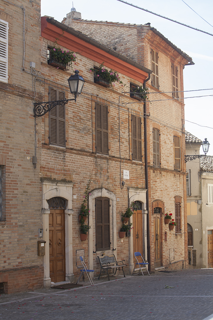 Vrijdagavond zat de enorme recreatieruimte van de camping ineens vol met Indiase mensen. Navraag leerde ons dat er morgen een grote Indiaas/Italiaanse bruiloft zou plaatsvinden in één van de kerken in Montefiore dell' Aso. Een Milanees echtpaar aan de overkant bleek ook deel uit te maken van deze groep en vertelde ons dat de bruiloft om 13.30 zou plaatsvinden. Dus wij gewapend met fototoestel de berg op. Bleek het al om 11.00uur te zijn geweest. Een paar rijstkorrels waren als stille getuigen achtergebleven..... Dan maar de vele steegjes in dit mooie dorpje bekijken en niet te vergeten de onbetaalbare vergezichten.