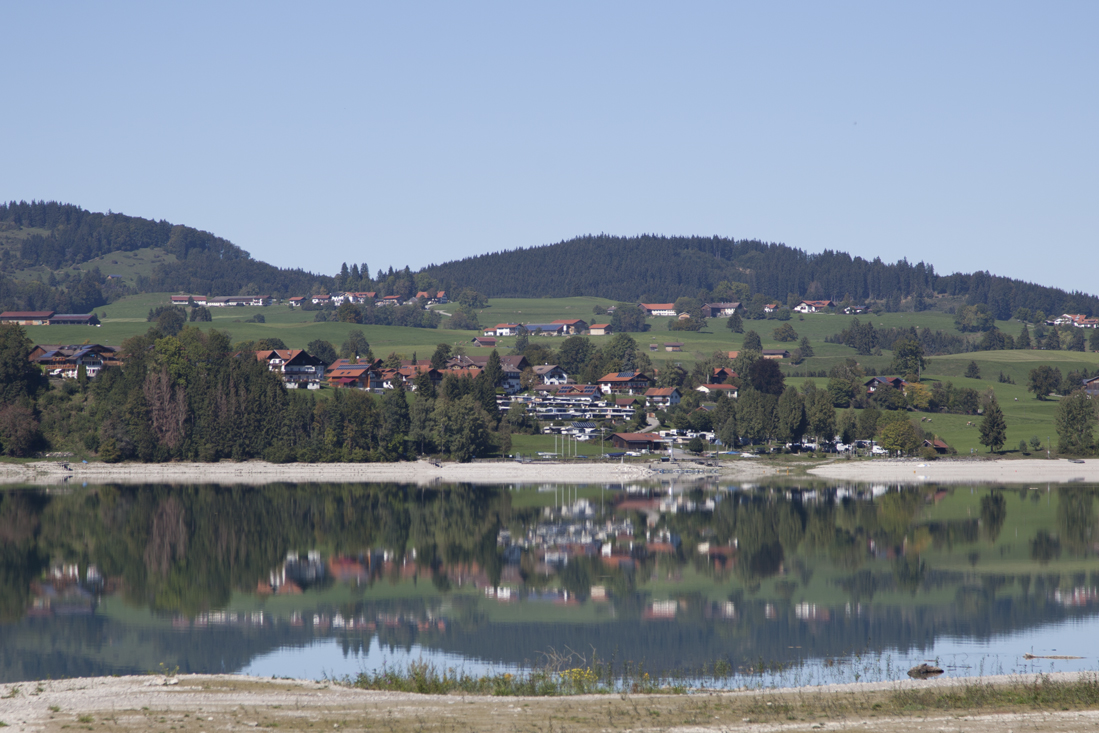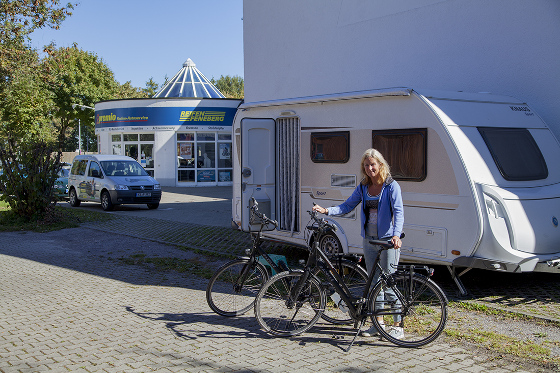 Om twee uur reden we de enorme Camping Cisano op. Met een golfkarretje werden we over het giga grote terrein gereden om ons plekje naast Matthias en Elena aan te wijzen en toen snel weer terug naar de receptie om aan te melden. Iets later stond de caravan op z'n plek en hebben we gezellig zitten bijpraten. 's-Avonds gezamenlijk gegeten op de restaurantcamping. Tijdens ons tweedaagse verblijf op deze camping twee mooie fietstochten in de omgeving gemaakt. Woensdag werd het weer eens tijd om verder te rijden. We wilden als verrassing naar Gitte en Eberhard die nabij Isny op de camping stonden. Ook vandaag leek alles weer vlot te gaan. Ja leek, want bovenop de Fernpass meldde de auto dat de bandenspanning in de rechterachterband te laag was. In Bichlbach de band flink opgepompt, maar voor de tunnel bij Füssen was de druk alweer te laag. Na de tunnel bleek er een Mercedesdealer te zijn, die ons probleem vast wel kon oplossen. Niet dus, had geen band en kon (of wilde...) er ook geen een bestellen. Hij stuurde ons naar het Premio bandencentrum 100 M. verderop. Na inspectie door de eigenaar bleek de band een canvasbreuk te hebben en mochten we geen meter meer rijden. De beloofde Adac sleepauto die ons met caravan naar de camping zou brengen kwam uiteindelijk niet en zo kampeerden we deze nacht naast het bandencentrum. De bestelde achterbanden arriveerden in de loop van de middag en om 15.30uur vertrokken we alsnog naar Isny, waar we een uurtje later aankwamen. Matthias en Elena waren hier intussen ook en zo zaten we iets later in het zonnetje gezellig te borrelen.