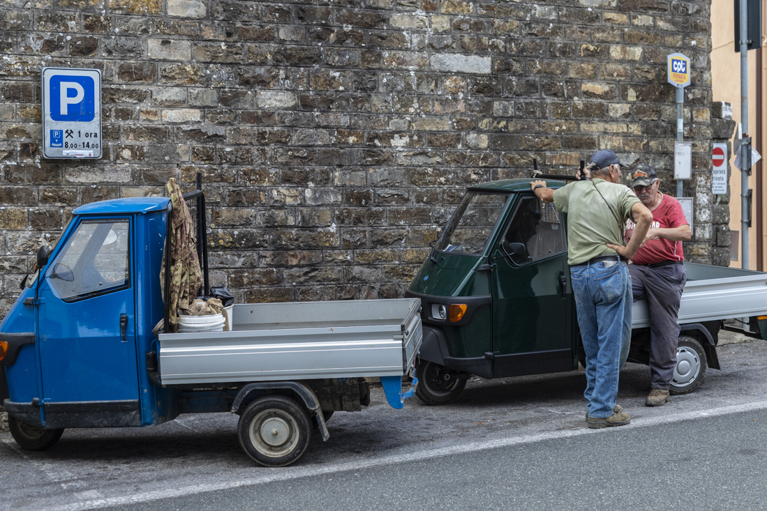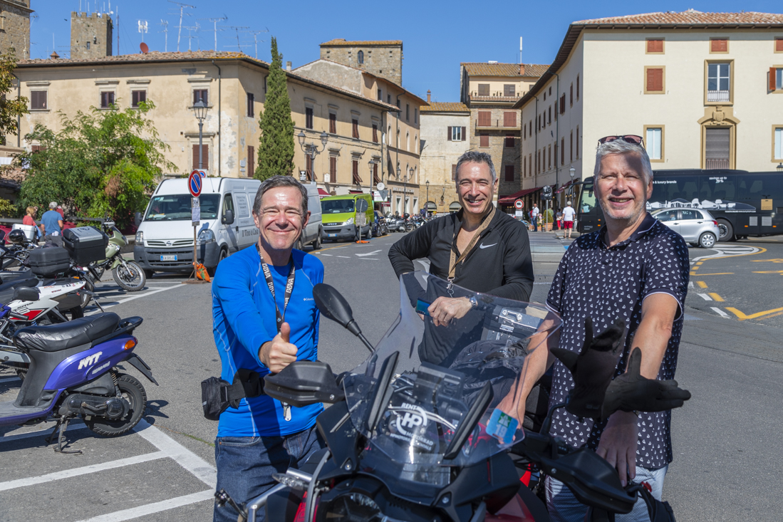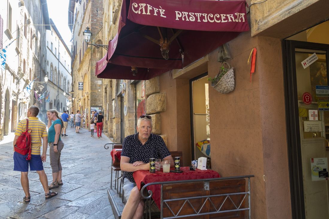 Eind van de week arriveerden G&E ook op de camping en namen gezellig een enorme wolkbreuk mee. Zo, het stof is er wel even weer vanaf! Na 5 dagen en 2 fietstochten hadden zij het weer gezien. Zoals verwacht was het niet hun soort camping en zij vertrokken weer naar Caldonazzo. Wij bleven lekker in Cecina hangen, de 28 a 29 graden beviel ons veel te goed. We hebben daarna nog veel gefietst en ook Livorno (verrassend mooi), Volterra en Piombino bezocht. In Volterra raakten we aan de praat met 2 motorrijders. Enrique en Guillermo bleken twee Argentijnse vrienden te zijn, die met hun gehuurde BMW's een reis door Italiƫ maakten. Met een uitnodiging voor een drankje in Argentiniƫ op zak namen we afscheid van deze twee sympathieke vrienden.