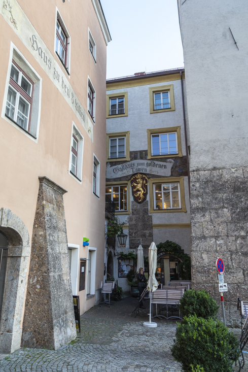 Tja, dan breekt het moment aan om weer eens aan de terugreis te denken. Natuurlijk een hartelijk afscheid bij ons 'vaste' restaurant Il Nuovo Caligola van eigenaar Dante, z'n dochter en medewerkers. De volgende dag stonden we om klokslag 8.00 uur bij de uitgang van de camping. We wilden vandaag proberen een flink stuk noorderlijker te komen. Om een uur of vier draaiden we Schwimmbad-Camping Hall in Tirol op. Met graadje of 16 en een gure wind was het niet Ʃcht lekker om buiten te zitten. Waarschijnlijk was het zwembad daarom ook gesloten ;-) Bijtijds vertrokken we naar het oude centrum van Hall voor een biertje in de heerlijk warme bar van Gasthaus Goldener Lƶwe. We hebben hier meteen maar een tafeltje gereserveerd om wat te eten. Bleek een goede keuze! Na nog een wandeling door het mooie oude centrum snel weer terug naar de camping.