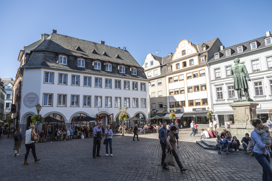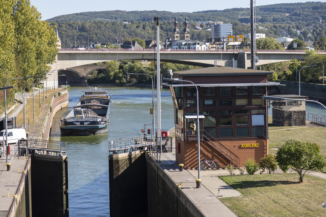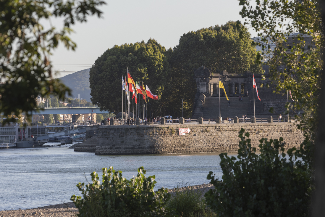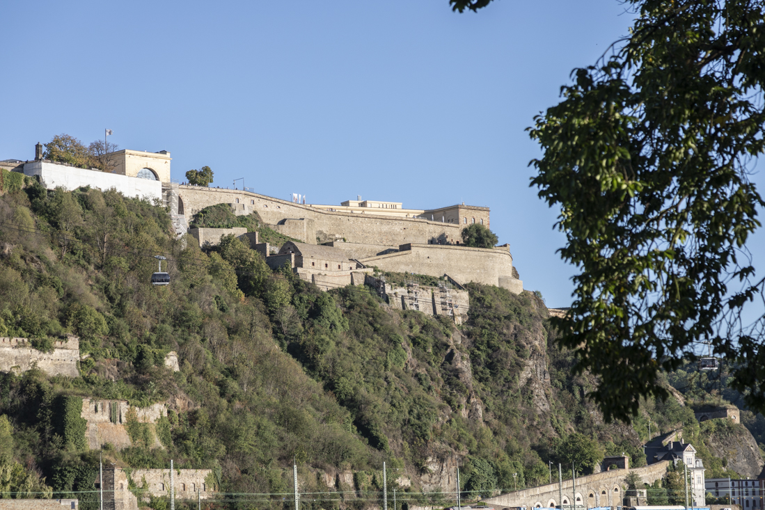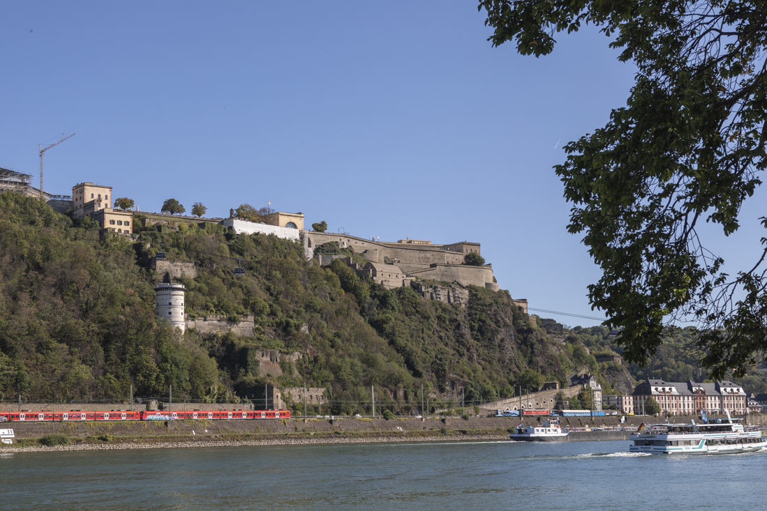 Zaterdag bijtijds de caravan weer vastgeknoopt aan de auto. We kunnen natuurlijk naar huis rijden, of nog een nachtje aan de Moezel staan. Agnes vond een stadscamping direct aan de Rijn in Koblenz. Telefoon werd niet beantwoord, dus gokten we maar om er gewoon heen te rijden. Oeps, dat ziet er vol uit! De alleraardigste dame aan de receptie vroeg of we tegen bijbetaling op de voorste rij wilden staan. Natuurlijk!! Helemaal aan het einde van de camping vonden we plek 163. Eerst eens even genoten van het prachtige uitzicht en toen de fietsen 'gestart' voor een rondje door de 'histerische' Altstadt van Koblenz. Op de heenweg lieten we ons mƩt fietsen overzetten met het pontje (geldklopperij). Na het bekijken van de altstadt een stuk langs de Moezel gefietst en via de overzijde weer terug naar de camping.