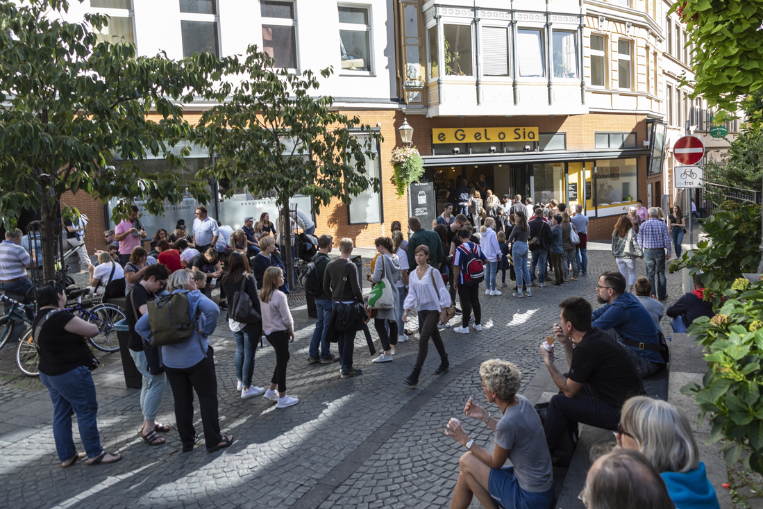 Vandaag ook geen haast. We wilden uitkomen op de Knaus Camping in Frickenhausen. Via een redelijk drukke Fernpas reden we Duitsland weer binnen. Tja, als we dan zo vroeg zijn kunnen we wel even omrijden via Pfronten om wat lekkers in te slaan bij Metzgerei Hipp. Na een heerlijke lunch van verse Oostenrijkse broodjes met overheerlijke Duitse LeberkƤse van Hipp konden we er weer even tegen. Dat kwam goed uit want de verkeersinformatie meldde een file van een klein uur op de A7. Dus maar een alternatieve route uitgestippeld. Rond een uur of drie kwamen we aardig in de buurt van afrit 104. Borden waarschuwden voor de afgesloten brug in Ochsenfurt (WƔt!!! Nog steeds??). Na tevergeefs naar Frickenhausen te zijn gereden (caravan te hoog) en daarna geprobeerd de camping vanaf de andere kant te bereiken (wegwerzaamheden), de camping opnieuw gebeld. De brug in Ochsenfurt is alweer drie maanden open hoor, de borden op de Autobahn zijn alleen nog niet aangepast...... #!*&%#*!_)**&* (of zoiets). Ruim 40 minuten later dan gepland bereikten we de camping. Voor fietsen inmiddels te laat Ʃn te koud. Dan maar een biertje in het waterige zonnetje. 's Avonds heerlijk gegeten bij de Urlaubs Weinstuben in Randersacker.
