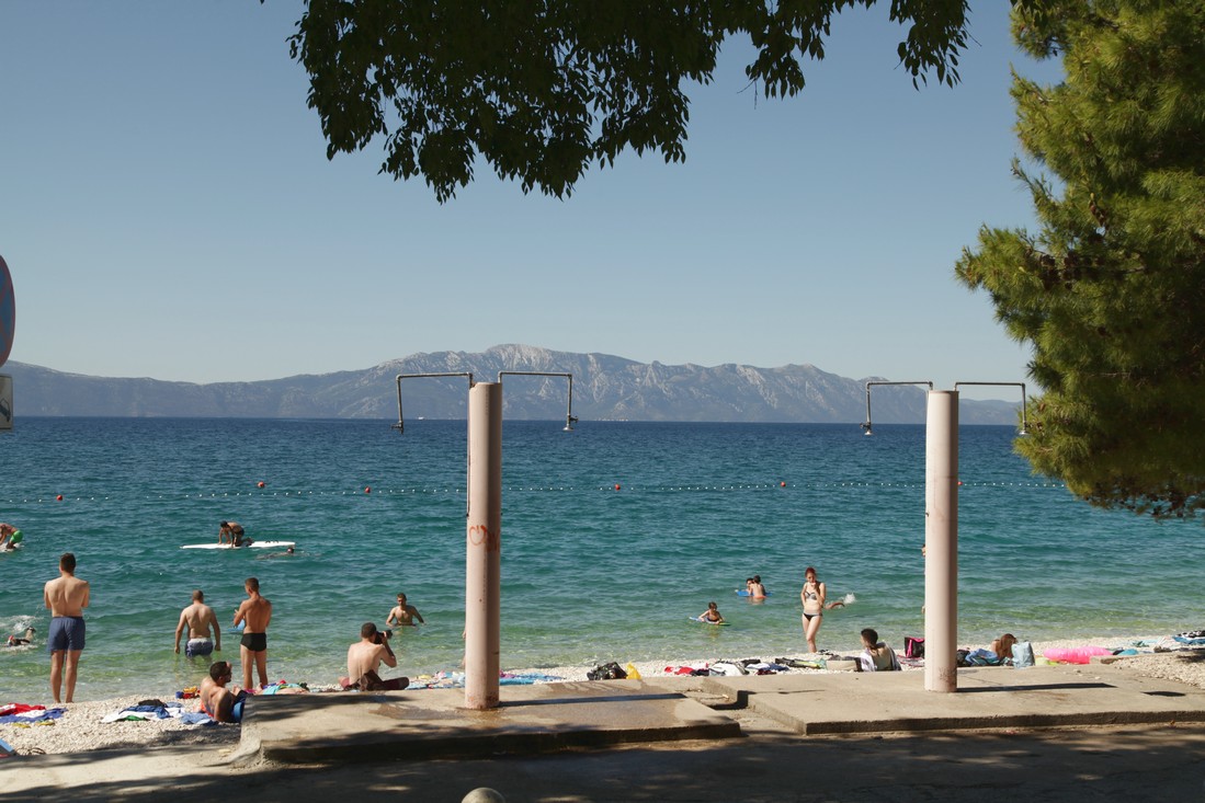 Donderdag 11 juni vertrokken we begin van de middag richting het zuiden. Om de avondspits rond de grote steden in Duitsland te mijden kozen we voor de route via de A45 en reden rond een uur of acht 's-avonds Camping Main Spessart Park op. Zodra de pootjes van de caravan uitgedraaid waren, zijn we in de het campingrestaurant (stel je er niet te veel van voor) maar eens lekker wat gaan eten. De lange dag en het kleine biertje zorgden ervoor dat we bijtijds op bed lagen. We wilden immers de volgende dag een flink eind opschieten. Na een heerlijk ontbijt met verse broodjes en stevige koffie de sleurhut weer vastgemaakt en op pad. Rond negen uur draaiden we de A3 op. Een flink aantal kilometers, uurjes en twee grensposten later bereikten we onze tweede overnachtingscamping. Kamp Terme Ptuj lag op een kwartierje lopen van het mooi gelegen plaatsje Ptuj. Dat hebben we dan ook maar gedaan. In de plaatselijke pizzeria hebben we iets naar binnen gewerkt, dat meer leek op een uit de kluiten gewassen ovenschotel dan op een pizza. Van ƩƩn zo'n ding kon een compleet Afrikaans dorp een maand lang eten.... Gelukkig moesten we daarna ook weer te voet terug naar de camping. Een kleine slivovic uit eigen voorraad deed wonderen. Zaterdagochtend zaten we alweer bijtijds in de auto. Maar waarheen eigenlijk? Onderweg maar eens in de meegebrachte campinggidsen gekeken. Met als resultaat Camping Viter in Zaostrog. Oeps, da's nog wel een aardig stukje rijden. Alweer een flinke tijd later reden we Zaostrog binnen. De nogal bijzondere aanrijroute over de promenade was gelukkig al aangekondigd in de gidsen. Beheerdster Gordana stond ons zeer vriendelijk te woord en iets later hadden we een prachtig plekje met uitzicht op zee gevonden. Pfffff, nu even zitten!
