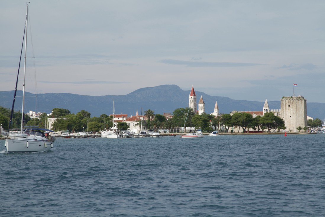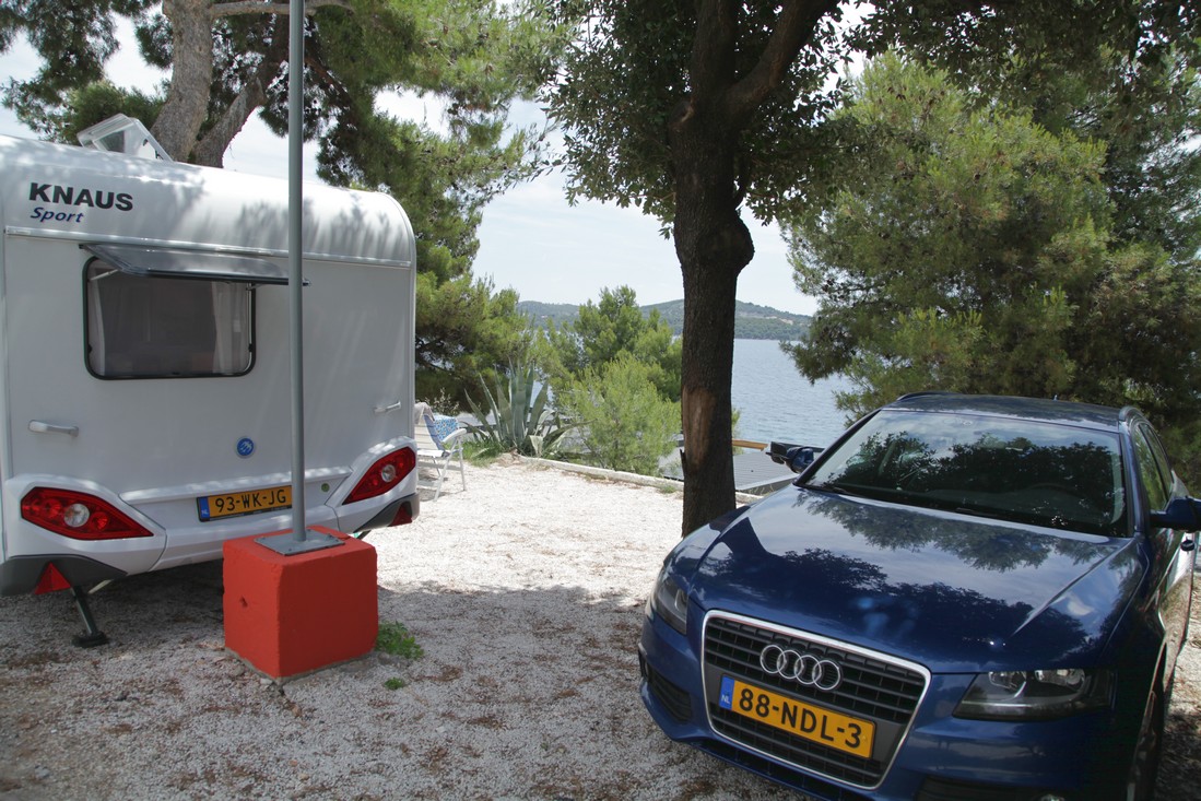 Na bijna twee weken vonden we het tijd worden om te verkassen. Dat onze plaats gereserveerd was hielp ook. Na een hartelijk afscheid en de belofte om terug te komen zijn we langs de kustweg naar Camping Belvedere bij Trogir gereden. Na de mini-camping in Zaostrog was het wel weer even schrikken. Het allervriendelijkste personeel stelde voor om mƩt caravan het terrein op te rijden en een plekje te zoeken. Aanmelden kwam daarna wel. Op het voorste pad van deze grote terrassencamping vonden we een mooi plekje in de schaduw met ook nog eens een schitterend uitzicht op zee. Vanaf de camping kan je met een taxibootje naar Trogir. We waren hier weliswaar twee jaar geleden al eens geweest, maar och met de boot is natuurlijk wel extra leuk. Dus zaten we tegen vijf uur in het knetterende geval op weg naar Trogir. Vanaf deze bestemming hebben we ook het stadje Primosten nog bezocht en een prachtige rit terug gemaakt door de bergen. Dat hier weinig gele kentekenplaten reden was wel duidelijk aan de blikken van de inboorlingen. Terug bij de kust evenals twee jaar geleden eens gezocht naar een plekje om de startbaan van het vliegveld te zien. Dit keer met meer geluk en zo enorm dichtbij de startbaan, dat je de vleugeltips bijna kon aanraken.