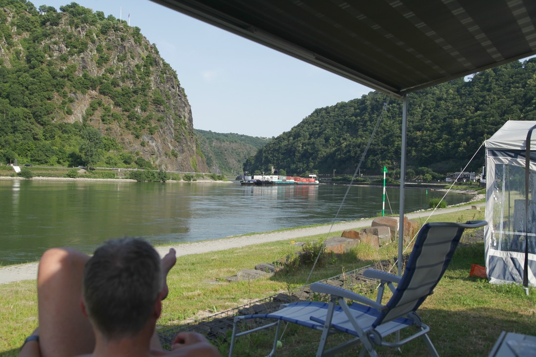 De volgende dag was de route niet zo lang, dus zijn we ook maar iets later vertrokken. Rond een uur of drie reden we langs de Rijn en hadden de camping in Bacharach uitgezocht om te overnachten. Na een snelle ronde over deze barstensvolle camping net snel weer vertrokken. Dan maar 'gewoon' weer naar Camping Loreleyblick. Al tijdens het langsrijden vielen ons de lege plekken aan het water op. Zouden we dan toch een keer geluk hebben. En ja hoor, na het aanmelden de camping opgereden en een prachig plekje aan de Rijn gevonden. De volgende dag aan de laatste etappe van de terugreis begonnen. Om 13.00 uur en 4.360 kilometer later stonden we weer voor de deur.