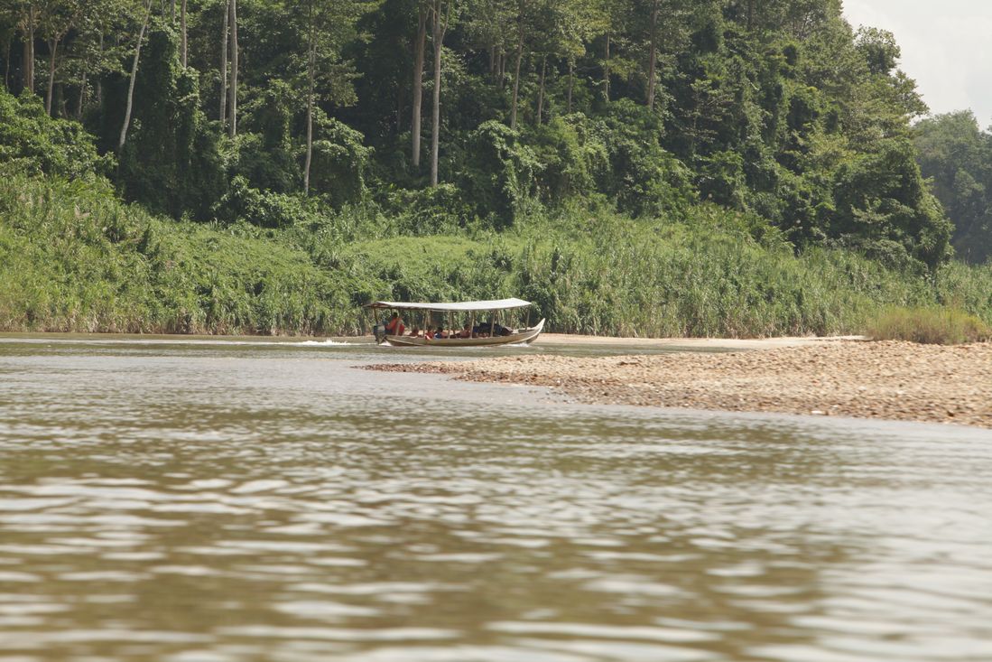 Bij het ontbijt kwam een van de fox reizigers ontstemd vertellen dat hij was aangevallen door een tapir, met een enorme wond op z'n rug als gevolg. Het beest was door het personeel met stokken het restaurant uitgejaagd en had toen 'zomaar' de Nederlandse toerist aangevallen. De man was -begrijpelijk- nog helemaal ontstemd. Wij maakten ons weer klaar voor de boottocht terug naar Kuala Tembeling.
