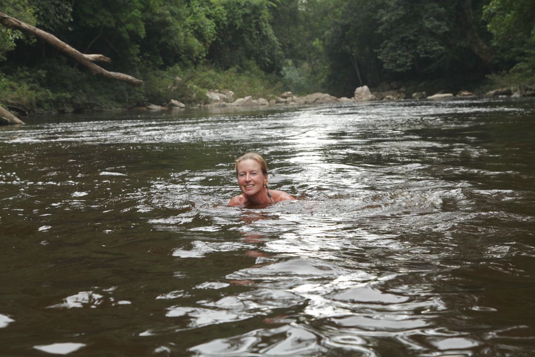 Dag twee in Mutiara hadden we ons aangemeld voor een bezoek aan de waterval. Eerst een flink stuk met de boot, dan wat wandelen en als beloning lekker zwemmen. Met de boot over de snelstromende rivier was inderdaad geweldig. De wandeling wat minder, vooral omdat we moesten uitkijken voor de enorme olifantendrollen (en geen olifant te zien). De waterval was niets bijzonders en het water erg koud en ook nog eens bruin. Een enkeling, waaronder Agnes, waagde zich in deze bruine blub. Na dezelfde route, maar dan omgekeerd natuurlijk waren we nƩt voordat te regen losbarstte terug in het hotel. Inmiddels was er ook nog een Foxgroep aangekomen, waardoor het 's-avonds gezellig druk was in het restaurant.