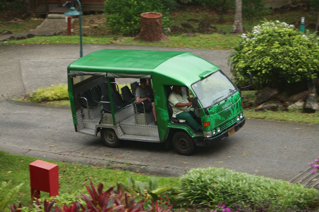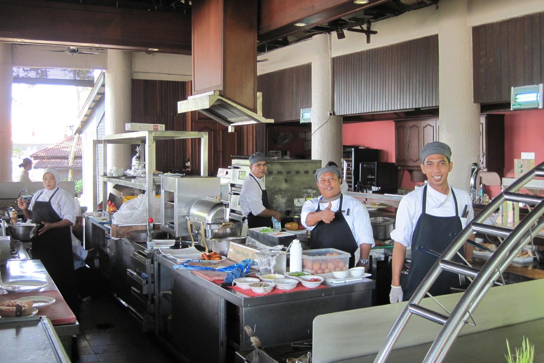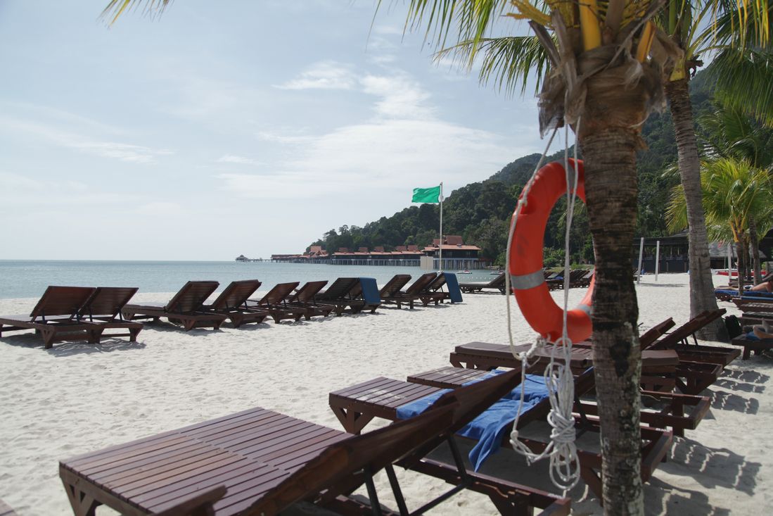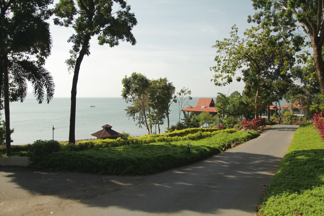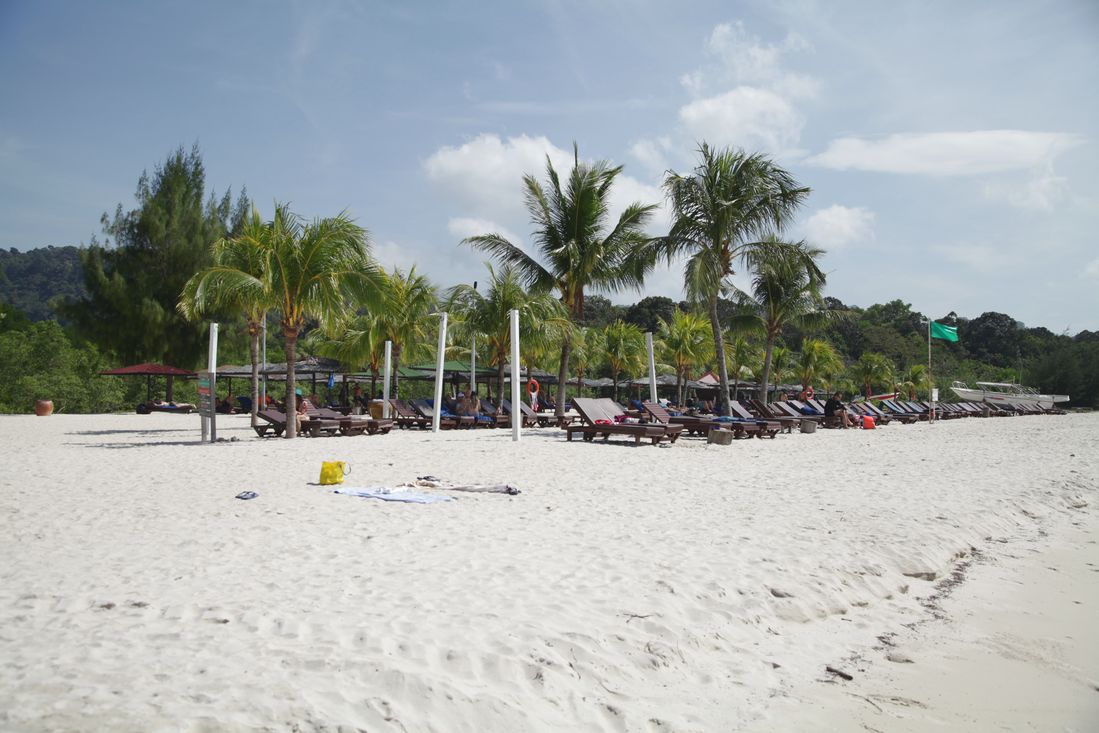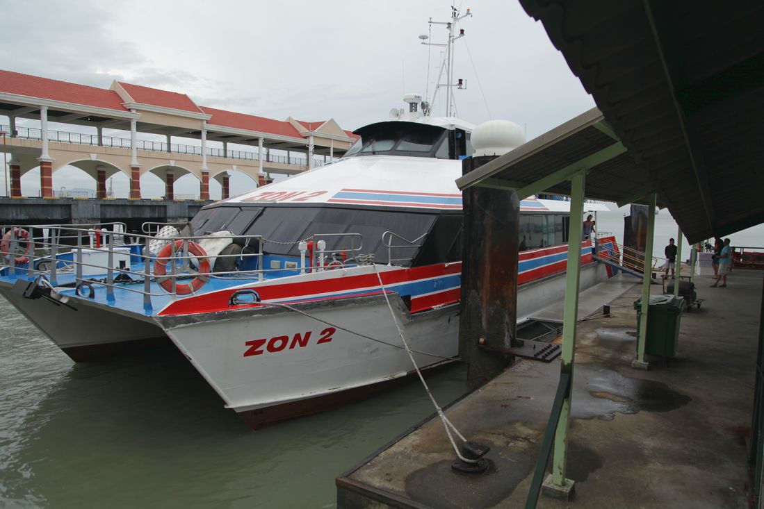 HƩƩl vroeg moesten we vandaag op om de transfer naar de ferry niet mis te lopen. Om 6.50 uur zaten we al aan het ontbijt en om 7.15 uur met koffers en al in het busje naar de haven van George Town. Na het zwaaien met de vouchers konden we doorlopen naar de ferry met de vandaag niet zo toepasselijke naam "Zon 2". Om 8.15 uur precies werden de motoren gestart en vertrokken we met een razend tempo richting Langkawi. De skyline ven Penang werd al snel kleiner. Drie uur later stapten we aan wal in Langkawi. Hier deed een waterig zonnetje z'n best om ons te verwelkomen. Rond half een kwamen we aan bij Berjaya. De enorme receptieruimte maakte een stevige indruk. Nee, onze kamers waren nog niet klaar, vertelde Deutsche Irma (?) uit Paderborn en dat zou nog wel 2 uur gaan duren... Pffff. Maar zoals altijd blijkt maar weer dat een goede (ooster)buur beter is dan een verre vriend, want na even dralen kwam Irma aanrennen met 2 sleutels en werden we snel met koffers en al door de shuttlebus naar onze kamers gebracht. Tjonge, wat hadden wij het getroffen met de ligging Ʃn uitzicht van onze huisjes. Dichtbij strand, zwembad Ʃn restaurants. En kwam dat even goed uit. We waren immers naar Langkawi gekomen om lekker te luieren!