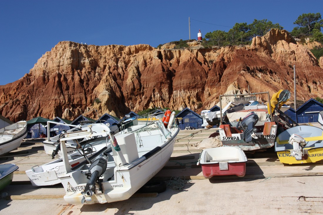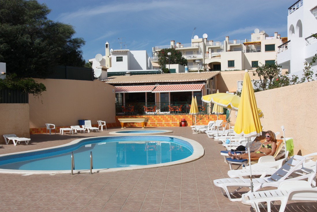 Zondag 25 oktober was het dan zover. Om vier uur werden wij door buurman Kees gedropt bij Schiphol en 2 uurtjes later waren we al op weg naar het zonnige Portugal. Na het oppikken van de koffers op het vliegveld van Faro begon de zoektocht naar de hostess van Oad. Ehhh.... maar die was er niet! Achteraf bleek dat een chaotische Portugese dame het vervoer naar het appartement voor ons ging regelen. Uiteindelijk is dit gelukt en na het droppen van de koffers zijn we "afgezakt" naar het dorp om op het terras van "La Cigale" een biertje te drinken. De eerste dagen hebben we een beetje rustig aan gedaan en bij het zwembad een boek gelezen en tussendoor maar eens naar het dorp gewandeld om op één van de terrasjes te lunchen.