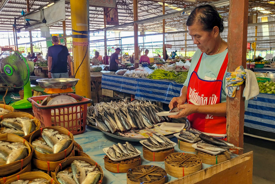 Na het ontbijt de scooter gestart voor een bezoek aan het Sirinart Rajani Ecosystem Learning Center. In dit kunstmatig aangelegde mangrovebos kan je een kilometer lange wandeling maken over een eveneens aangelegd pad. Onderweg heel veel informatie over deze noodzakelijke bebossing. Snel terug naar het dorp voor een koude cola en daarna de brug maar eens over om te kijken wat er aan de andere kant van de rivier te beleven is. Nou, niet veel. Het weggetje liep zelfs dood. Natuurlijk wel even gestopt bij het uitkijkpunt San Chao Mae Thapthim Thong en daarna onze neus achterna en uitgekomen bij het Sai Noi strand. WƔt een drukte. Dus snel weer opgestapt en een stuk het binnenland ingereden. In een van de stadjes vonden we een lokale markt en moesten natuurlijk wel stoppen. Op de markt een heerlijke smoothie gescoord en daarna google maar een gevraagd om een route naar ons hotel te bedenken. Nog even lekker in zee kunnen zwemmen en 's avonds voor de laatste keer gemotoriseerd naar Ox voor een garnalencurry.