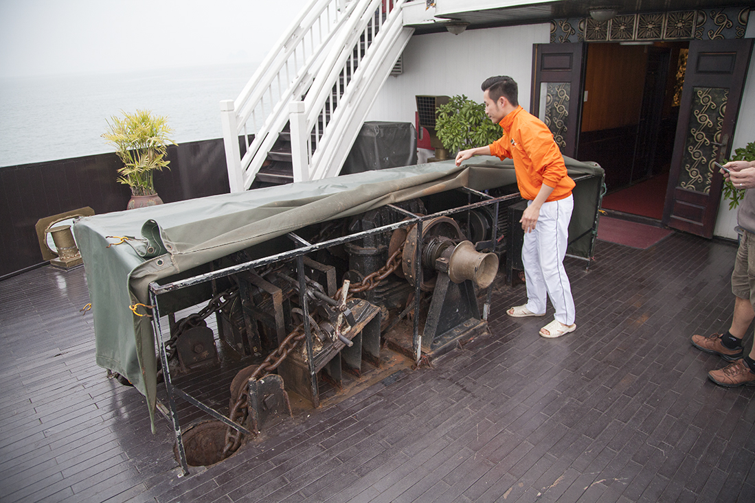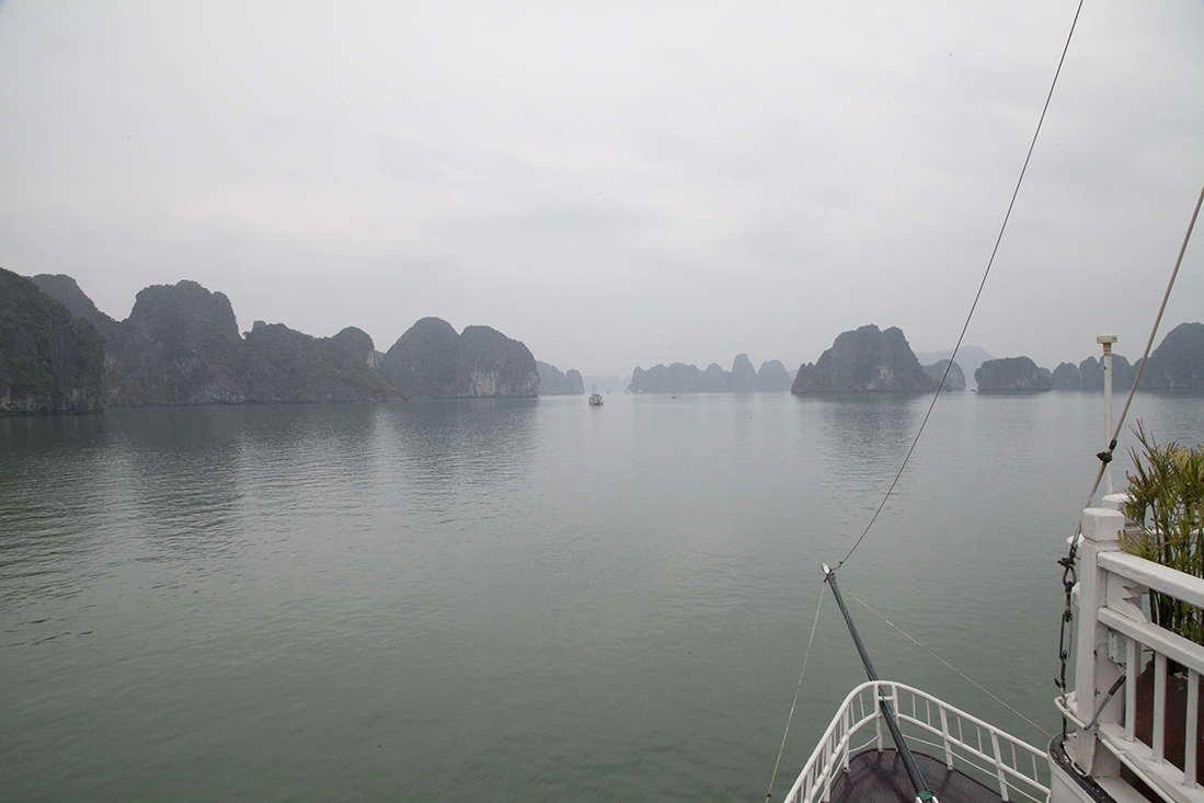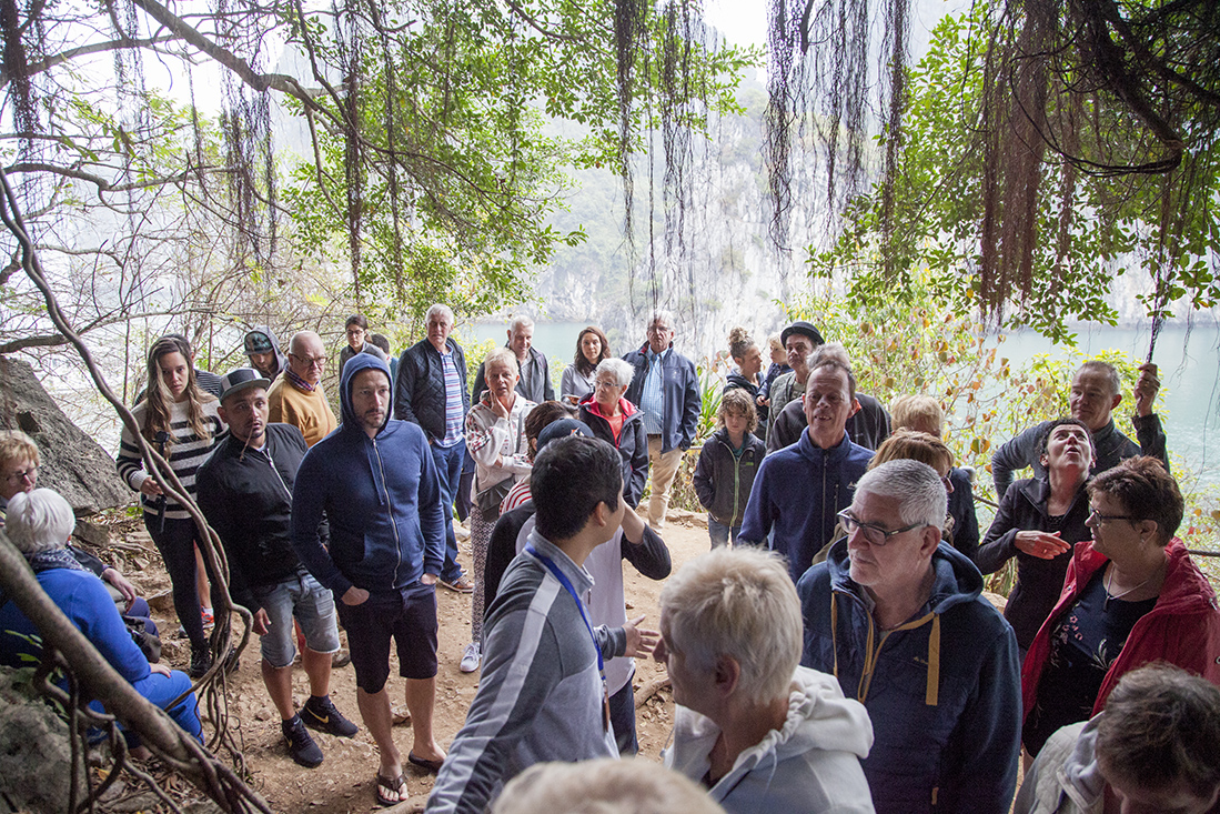 De volgende dag werden we gewekt door het starten van de motoren. Iets later werd het anker gehesen. Na het ontbijt het verzoek om ons weer op de benedenverdieping te melden. Opnieuw vertrokken we met de tender, maar dit keer richting een eilandje. Hier bekeken we een druipsteengrot en een kunstmatig aangelegd strand en stapten toen weer in de tender. Na een 'afscheidslunch' gingen de koffers weer mee naar de wal. De bus stond alweer klaar voor onze reis naar Ninh Binh.